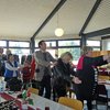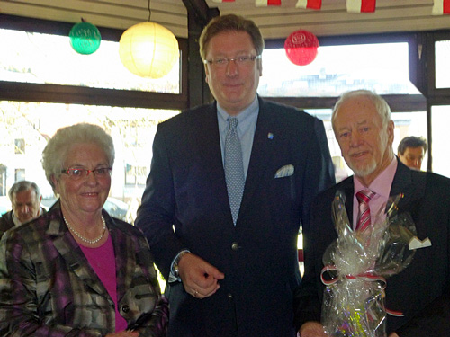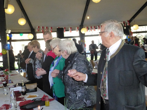 Als Überraschungsgast kam Oberbürgermeister Dirk Elbers mit seiner Frau, um beiden, Hans Küster, den eine Zeitung Mr. Bürgerhilfe nannte, und Resi Roski, seiner besseren Hälfte, zum 75. Geburtstag zu gratulieren. Hanno Bremer, Bezirksvorsteher im Stadtbezirk 7, verlieh Hans Küster nach seiner Laudatio die Ehrenmedaille der Bezirksvertretung zusammen mit einer Urkunde und Ratsfrau Angelika Penack-Bielor überreichte Resi Roski einen farbenprächtigen Blumenstrauß. Zu den Gratulanten gehörten unter anderem Staatssekretär Karl-Heinz Krems, Rolf Buschhausen, Dr. Edmund Spohr von der AGD, Vertreter des Sana-Klinikums Gerresheim wie Professor Dr. Andree oder Ratsfrau Helga Leibauer mit ihrem Mann. Natürlich waren viele Mitglieder der Bürgerhilfe zum Gratulieren gekommen. Der Vorstand überreichte den beiden Geburtstagskindern einen selbst erstellten Bildband über die Aktionen der Bürgerhilfe der letzten Jahre und weiterhin etwas für das gemeinsame Campen. Herr ten Eicken vom Rheinboten überraschte das Paar mit einer extra erstellten Sonderseite des Rheinboten. Natürlich war die Familie sehr zahlreich vertreten. Von Resis Seite war sogar ein Schwager extra von Schweden angereist. Hans Küsters Sohn moderierte die Veranstaltung. Sein Enkel Kevin spielte mit dem Fanfaren-Corps Düsseldorfer-Radschläger und brachte nachher mit 3 Urenkelkindern ein Ständchen. Viele Gerresheimer Vereine und Institutionen waren gekommen, um Dank zu sagen. Sehr originell waren die Kids der Kindertagesstätte Maria vom Frieden, die ein Lied in Tierkostümen vortrugen, was den Geburtstagskindern sehr zu Herzen ging. Der Gerresheimer Posaunenchor der evangelischen Kirche brachte die Gäste zu Anfang in Festtagsstimmung. Das Duo Joachim Heik und Alfred Schulz sorgten immer wieder für musikalische Akzente. Ralph Marquis und Marita Weiss brachten musikalische Ständchen und die Anwesenden sangen bei ihren Liedern mit. Die Jugend-Tanzgruppe des Post S.V. musste mehrfach Zugaben geben und die Muckeköpp begeisterten in ihrer unnachahmlichen Art. So viele Freunde und Bekannte waren zum Gratulieren gekommen. Dieser Tag wird für beide, die sich für die Bürgerhilfe Gerresheim voll engagieren und helfen, wo sie kännen, unvergesslich bleiben.