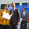 Ute Schulz, in Gerresheim meist „Uns Ute“ genannt, feierte bei strahlendem Sonnenschein ihr 50 jähriges Berufsjubiläum zunächst vor dem Gerresheimer Rathaus, wo Ute geehrt wurde. Bezirksvorsteher Hanno Bremer und unser Oberbürgermeister Dirk Elbers lobten ihr Engagement in den vielen Gerresheimer Vereinen, in denen sie ehrenamtlich aktiv ist und sich für ihre Mitmenschen und soziale Belange einsetzt. Im Anschluss an die Laudatio bekam die Schirmherrin der Bürgerhilfe Gerresheim die Ehrenmedaille der Bezirksvertretung verliehen. Prominente aus allen Parteien, aus ihrer Branche und der Wirtschaft wie viele Gerresheimer Bürger, Vereinsvertreter und nahe Verwandte waren gekommen, um Ute Schulz zu ehren. Sogar aus der Nähe von Meschede, wo sich Ute bei der Jagd entspannt, war man sehr zahlreich extra mit einem vollen Bus gekommen. Herr Fuhrmann überreichte ihr im Namen des Berufsverbandes stellvertretend den silbernen Meisterbrief zum 50 jährigen Berufsjubiläum und lobte ihren Einsatz und ihre Treue. Die vielen Vereine, in denen Ute tätig ist, sagten mit einer von den Vereinsvorsitzenden unterschriebenen Urkunde symbolisch danke. Eine einzigartige Aktion. Zu aller Überraschung überreichte der Bundestagsabgeordnete Thomas Jarzombek eine Biographie unserer Bundeskanzlerin Angela Merkel, in der eine handschriftliche persönliche Widmung stand. Zwischendurch wurden Häppchen und Getränke von überwiegend Mitgliedern der Bürgerhilfe gereicht. Stefan Friedel brachte mit Mitgliedern der Gerresheimer Bürgerwehr ein musikalisches Ständchen, ein Potpourri Düsseldorfer Brauchtumslieder. Die Schützengruppen, die zu Anfang sehr zahlreich aufmarschierten und musikalische Einlagen brachten, ehrten damit Ute Schulz und Pfarren Sülzenfuß, der sein 40 jähriges Priesterjubiläum in diesen Tagen feiert. Höhepunkt war der große Zapfenstreich, der mit der Nationalhymne endete. Diese Ehrung und Wertschätzung wird nur wenigen in Gerresheim zu Teil. Ute Schulz bedankte sich sichtlich gerührt, besonders auch bei ihrem Geschäftsteam mit Frau Wippermann und weiterhin bei Frau von Rappert, der Verwaltungschefin im Gerresheimer Rathaus, für die tolle Organisation und die vielen Überraschungen.