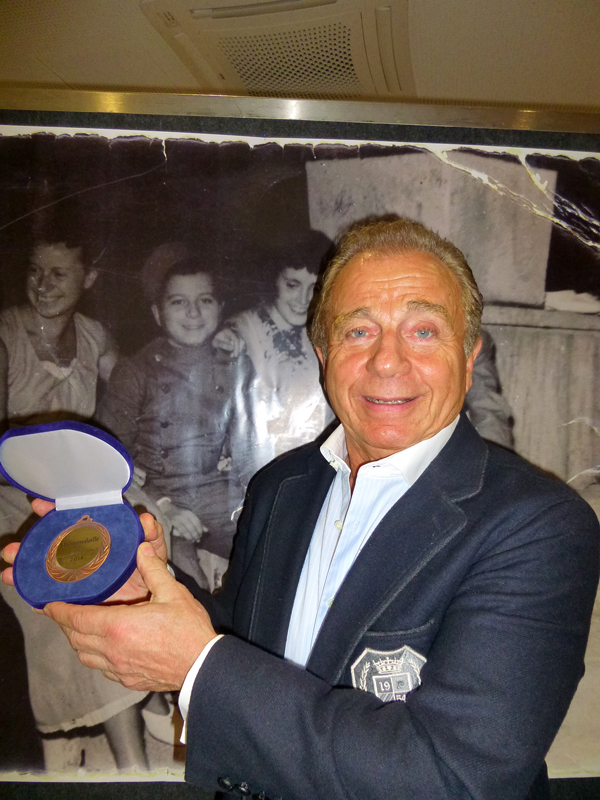 Vor dem anschließend riesigen enthüllten Foto, das unter anderem Enrico in jungen Jahren zeigte, verliehen ihm, dem mehrfachen Sieger der "Tour de Menü", die beiden ersten Vorsitzenden der Bürgerhilfe Gerresheim, Hans Küster und Dr. Jens Petersen, die Ehrenurkunde und die neu gestaltete Ehrenmedaille.