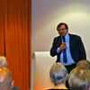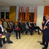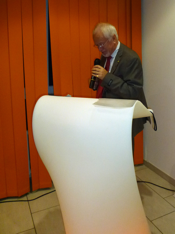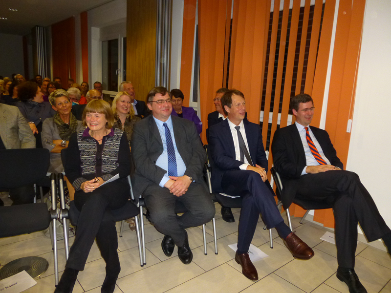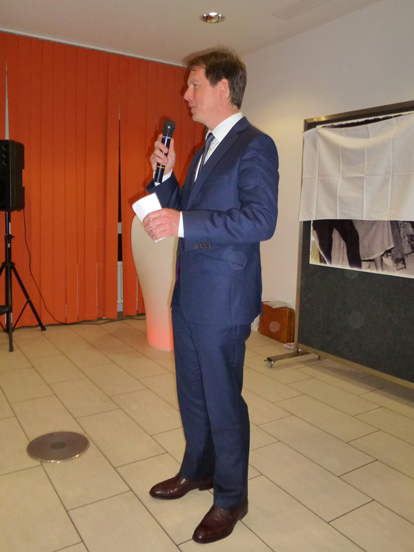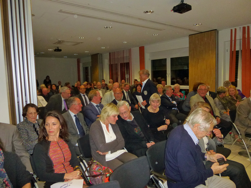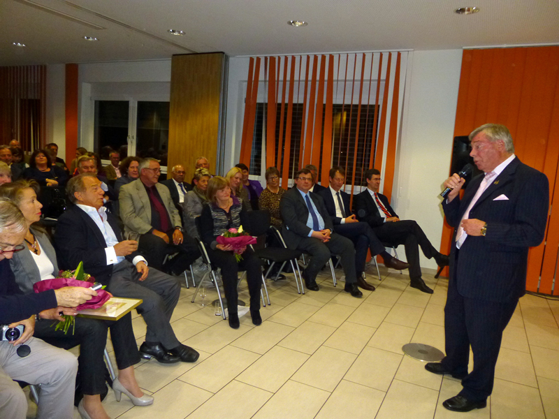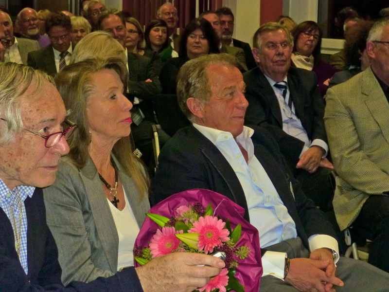 Dr. Jens Petersen, der zweite Vorsitzende der Bürgerhilfe Gerresheim, verwies darauf, dass die 11te, erstmals neue Ausführung der Ehrenmedaille, fotogener ist und extra für die Presse größer gemacht wurde. Als Hausherr des Gerresheimer Sana-Krankenhauses begrüßte zunächst Geschäftsführer Christian Engler die zahlreich erschienen hochkarätigen Gäste, die zur Ehrung von Enrico de Angelis kamen. Darunter waren viele Vereinsvertreter, Gäste von seinem Ristorante Saltimbocca, weiterhin unter anderem die Ratsfrauen Angelika Penack-Bielor und Helga Leibauer, Ratsherr Rolf Buschhausen, Helga Wassenhoven von der Stadt, viele Ärzte vom Sana-Krankenhaus wie Dr. Nemat, Thoraxchirurg von der neuen Lungenabteilung oder Dr. Heidenhain, der neue Chefarzt der Chirurgie, viele Angehörige des Jubilars, darunter natürlich die Frau des Jubilars, Vertreter der Wirtschaft, zum Beispiel von der Metro, weiterhin Bekannte aus dem Restaurantgewerbe, viele Pressevertreter wie beispielsweise von der Rheinischen Post oder Herr ten Eicken vom Rheinboten und Christian Zeelen von Centertv, schließlich auch Karsten Kunert, der neue Bezirksbürgermeister, der das Engagement und das weite Spektrum der Bürgerhilfe Gerresheim würdigte, wobei er die Kindereinkleidungsaktion besonders hervorhob, was er im letzten Monat selbst miterleben konnte.