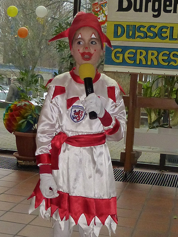 Im Gerresheimer DRK-Zentrum gab es Samstag, dem 1. Februar 2014 eine Karnevalsveranstaltung der Superlative und weil die Bürgerhilfe Gerresheim in diesem Jahr ihr 25jähriges Bestehen feiert, bekamen alle Anwesenden zunächst noch ein Präsent überreicht. Mit dem Einzug der Gerresheimer Bürgerwehr und ihres Präsidenten Stephan Friedel kam von Anfang an Power in die Sitzung und die Jugendtanzgruppe war ein Augenschmaus. Bei Kaffee und Kuchen wurde der tolle Showtanz nach Motiven von Mary Poppins genossen. Jana eroberte als Kinderhoppeditz die Herzen aller im Saal. Mit ihren 8 Jahren ließ sie in ihrer Büttenrede das Jahr Revue passieren. Sie ist eine der Talente wie Rogi, der kurz vor Schluss eine Rede hielt, wobei man mitdenken musste und wo alle still lauschten, oder Sophie und Caro, die einen tollen Schlusspunkt setzten. Nachdem die CD nicht funktionierte, sangen sie aus dem Stehgreif altbekannte Düsseldorfer Lieder, wobei der ganze Saal mitschunkelte. Auch Markus Sobotka, jetzt "Dä Jong us Jerresheim" begeisterte. Im originellen Schlossturm-Kostüm hielt er eine Büttenrede, in die er zwischendurch Lieder zum Mitsingen einstreute, einfach beeindruckend.