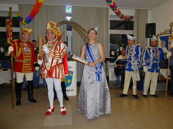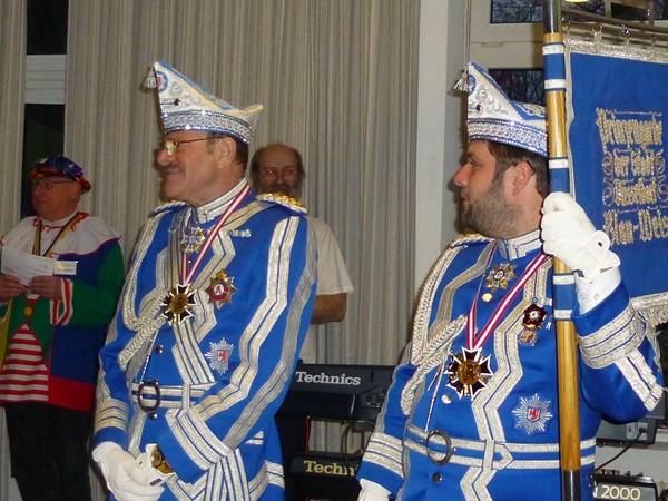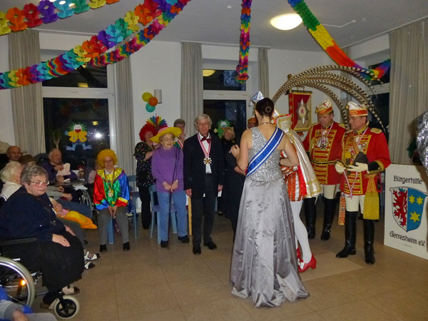 Traditionsgemäß wurde in Person von Jutta Abu-Shanab, 78 Jahre, und Walter Raddatz, 77 Jahre, wieder ein Heimprinzenpaar gekürt, das die Sitzung genoss. Höhepunkt für die Beiden war, als das Düsseldorfer Prinzespaar, Michael I. und Venetia Pia, Ihnen ihren Orden verlieh wie auch einer 101jährigen Seniorin und einem Geburtstagskind gratulierte. Das Prinzenpaar ging durch die Reihen, setzte sich und schunkelte mit den Senioren begeistert mit. Amüsant moderierte Ute Schulz, die Schirmherrin der Bürgerhilfe Gerresheim, das bunte Programm. Lothar Bochem begann pünktlich um 15.11 Uhr mit dem Lied der Bürgerhilfe. Klaus Heylen, also ich in Person des Pressesprechers, sang unter anderem als Premiere das selbst getextete Lied "Engel und Bengel". Der Mann mit dem Koffer, Dirk Westmeier, besser bekannt als Puma, erzählte in seiner witzigen Rede auch von Fortuna. Dat Marita, Marita Weiss, sang neben bekannten und neuen Liedern, mit Alfred Schulz zusammen das Lied "Wolke 7" und Judith, die Oldietante, brachte auch tolle alte und neue Lieder, die sehr gut ankamen. Die Tanzgarde der Gerresheimer Bürgerwehr war ein weiteres Highlight. Hervorzuheben war dabei der Showtanz mit Motiven von Mary Poppins. De Jong us Jerresheim, Markus Sobotka, kam im Schlossturmkostüm. In seiner lustigen Rede hatte er altbekannte Lieder eingebaut, die alle mitsangen. Vor und nach dem Düsseldorfer Prinzenpaar lief das Sängerduo Flönz und Röggelchen zur Hochform auf und musste wie andere auch Zugaben geben. Thomas Mühlenbein von den 3 Köbessen sang sein Lied über Kappes Hamm als Uraufführung und brachte den Saal mit altbekannten Liedern zum Rasen. Viele Gerresheimer Persönlichkeiten wie Rolf Buschhausen oder Heinz Lückerath und Vertreter von Vereinen waren zugegen. Alfred Schulz und Joachim Heik sorgten für den erfrischenden musikalischen Rahmen. Frau Meister, die Leiterin des Ferdinandheimes, bedankte sich zum Schluss für das großartige Programm, das Hans Küster und seine Mannen auf die Beine gestellt hatten. Dafür gab es Lob von allen Seiten. Wie immer gab es zum krönenden Abschluss traditionsgemäß den schon berühmten Kartoffelsalat mit Bockwürsten und Frikadellen. Danke nochmals den vielen helfenden Händen der BHG, den aufopferungsvollen Betreuern des Ferdinandheimes und den unendgeldlich auftretenden Künstlern.