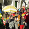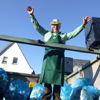 Dank der Saubande, die den Gerresheimer Veedelszoch vorbildlich organisiert hatte! Die Mitglieder der närrischen oder jecken Bürgerhilfe machten in ihren einheitlichen Kostümen auf die Sturm bedingten Baumschäden aufmerksam. Pünktlich um 11.11 Uhr schien die Sonne und der Zoch begann in umgekehrter Reihenfolge, so dass die Teilnehmer alle 40 Wagen und Gruppen beim Jubiläum der Saubande sehen konnten. Dadurch konnte man bei der Aufstellung auf der Quadenhofstraße alle Wagen und Gruppen im Gegenlicht zur Sonne bestaunen, wenn man mit seinem Wagen vorbeizog. Über Morper Straße, Heyestraße ging es Richtung Gerresheimer Rathaus. Im Bereich Alter Markt bis hin zur Benderstraße waren dabei riesige Menschentrauben zu sehen. Die Begeisterung der Menschen war riesig. Man schunkelte, einige standen um ein Bierfass herum am Kölner Tor und es wurde viel Helau gerufen. Auch auf der Von-Gahlen-Straße und "Unter den Eichen" sammelten die Kinder fleißig Wurfmaterial. Über die Schönaustraße ging es schließlich nochmals bis zum Alter Markt. Es schien ganz Gerresheim auf den Beinen.
