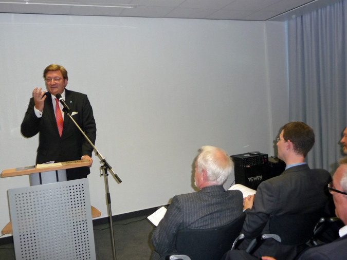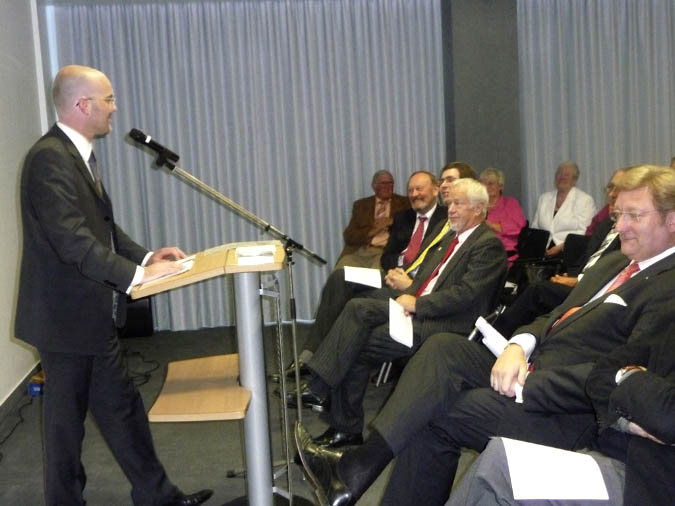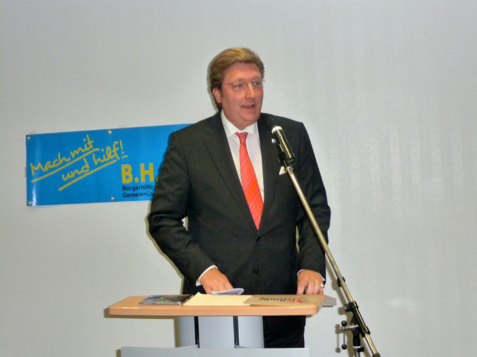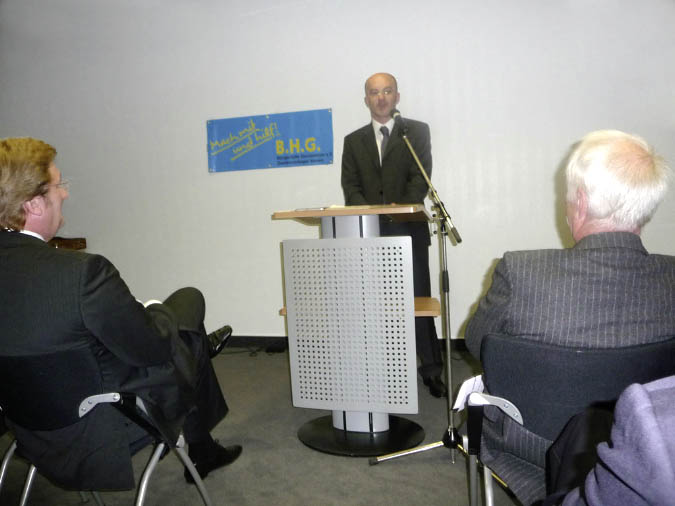 Über 150 Gäste waren gekommen, um in der Sana-Klinik, unserem Krankenhaus, die Jubiläumsfeier "20 Jahre Bürgerhilfe Gerresheim" mitzuerleben. Darunter waren viele Gerresheimer Persönlichkeiten und bekannte Größen aus Politik, Wirtschaft, Sport und anderen Vereinen, weiterhin Freunde, Förderer, der gesamte Vorstand und nicht zuletzt die große Anzahl an Mitgliedern, ohne deren Einsatz vieles nicht möglich gewesen wäre. Hans Küster, der erste, und Dr. Jens Petersen, der zweite Vorsitzende der Bürgerhilfe Gerresheim, begrüßten die Gäste und führten durch das interessante Programm. Lothar Bochem sang zunächst noch einmal das Vereinslied, das zum zehnjährigen Jubiläum entstand. Frau Dr. Fuckard-Bratsch und Herr Dr. Martin Windmann vertraten die Sana-Klinik. Letzterer, Geschäftsführer des Krankenhauses, würdigte in seinem Grußwort die gute Zusammenarbeit und bedankte sich für die großzügige Unterstützung in all den Jahren. Als ein Beispiel erwähnte er die noch zuletzt übergebene Kletterwand für die kinerneurologische Station des Gerresheimer Sana-Krankenhauses. Als Höhepunkt des Abends hielt Oberbürgermeister Dirk Elbers eine tolle Festrede. Tags zuvor hatte er noch im Rathaus die Siegerehrung des Radschlägerturniers der Bürgerhilfe Gerresheim vorgenommen. Daran anschließend ging er auf Traditionen ein und gab in humorvoller Weise Anekdoten zum Besten, die er bei der Bürgerhilfe erlebte. Beispielsweise erinnerte er sich an das stundenlange Zerschneiden eines riesenlangen Christstollens und wie ihm der Arm weh tat, sich aber nichts anmerken ließ. Er lobte die Atmosphäre in Gerresheim und würdigte das Engagement der Bürgerhilfe und deren Einsatz für diese Traditionen. Der Oberbürgermeister betonte, dass er vor fünf Jahren für den symbolischen Jahresbeitrag von 15 Euro Mitglied der Bürgerhilfe wurde und meinte: "Wenn es die Bürgerhilfe Gerresheim nicht geben würde, so müsste sie neu gegründet werden".