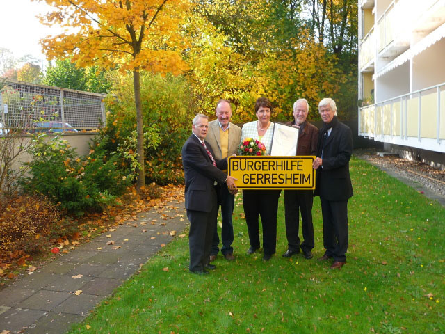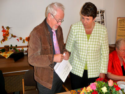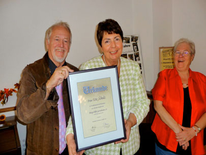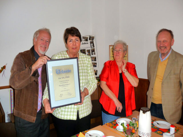 Ute Schulz, die neue Schirmherrin der Bürgerhilfe Gerresheim, ist Nachfolgerin von Friedrich Holthaus, der sich 15 Jahre lang für die B.H.G. sehr engagierte. Dieser begleitete z.B. in dieser Zeit die Sendungen im Bürgerfunk. Die Bürgerhilfe Gerresheim dankt ihm und stellt noch einmal seine großen Verdienste heraus.