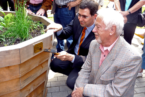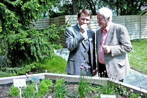 Privatdozent Dr. Tillmann Supprian, Abteilungsarzt der Gerontopsychiatrie des LVR-Klinikums Düsseldorf, die Betreuer, die Patienten, die zahlreich erschienen Mitglieder der B.H.G. und Persönlichkeiten, wie Frau Penack-Bielor, freuten sich riesig, da sie im Rahmen einer Feierstunde zwei Hochbeete mit Kräutern und Gemüse einweihen konnten, die von der Bürgerhilfe Gerresheim gesponsert wurden. Eine kleine Spendentafel, die Hans Küster und Dr. Jens Petersen, die ersten beiden Vorsitzenden der B.H.G., an das Kräuterhochbeet annagelten, erinnert an die größte Einzelspende der Bürgerhilfe im Garten vor Haus 3 des Klinikums an der Bergischen Landstraße. Eine Patientin trug sogar ein Gedicht vor.