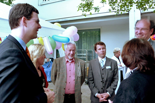 Nach der Feierstunde konnten sich die Gäste bei einem Imbiss noch in Einzelgesprächen informieren und die anwesenden Patienten fühlten sich bei dem Bilderbuchwetter im Garten von Haus 3 sehr wohl.