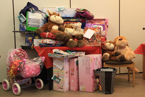 Dank gilt dem Fußball Zweitligisten Fortuna Düsseldorf und dem Eishockey Erstligisten DEG. Beide hatten spontan Eintrittskarten für Jungen und Mädchen gespendet. Zu erwähnen ist die treue Leserin, die wie in jedem Jahr eine halbe Fußballmannschaft an Kuscheltieren draufgepackt hatte. Kinder der Klasse 8d des Marie-Curie-Gymnasiums hatten Geld gesammelt, so dass die Kinder für ihren Sportunterricht die dringend benötigten Springseile bekommen haben.