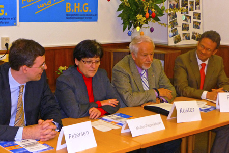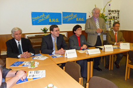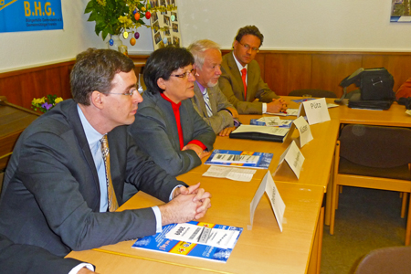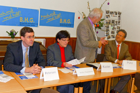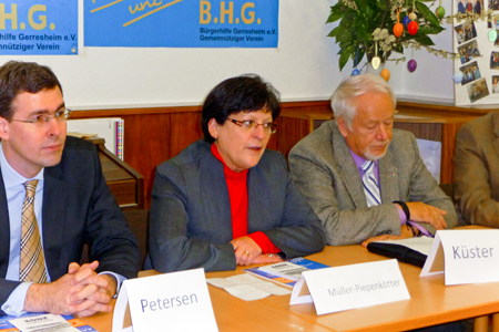 Anlässlich eines Förderpreises von 2000 Euro für das Projekt „Rauschbrillen“ durch die Bürgerhilfe Gerresheim an den Leiter der Jugendarrestanstalt Gerresheim, Herrn Edwin Pütz, besuchte die NRW-Justizministerin, Frau Roswitha Müller-Piepenkötter, die B.H.G. in ihren Räumen auf der Märkischen Straße. Die NRW-Ministerin lobte zunächst das Engagement der Bürgerhilfe mit ihren tatkräftigen Vorsitzenden Hans Küster und Dr. Jens Petersen und würdigte gleichzeitig die hervorragende sozialpädagogische Leistung der Jugendarrestanstalt und ihres Leiters Edwin Pütz. Denn „Jugendstraftätern zu helfen, ist eine gesellschaftliche Aufgabe“, sagte die Ministerin, und dieser Aufgabe habe sich die Bürgerhilfe Gerresheim in hervorragender Weise angenommen. Die Jugendvollzugsanstalt Gerresheim hat mit ihren 60 Plätzen Modellcharakter und trägt seit 2005 mit dazu bei, die Wartezeit auf Anstaltsplätze zu halbieren. Davon konnte sich auch die bayerische Justizministerin überzeugen.