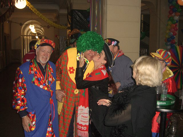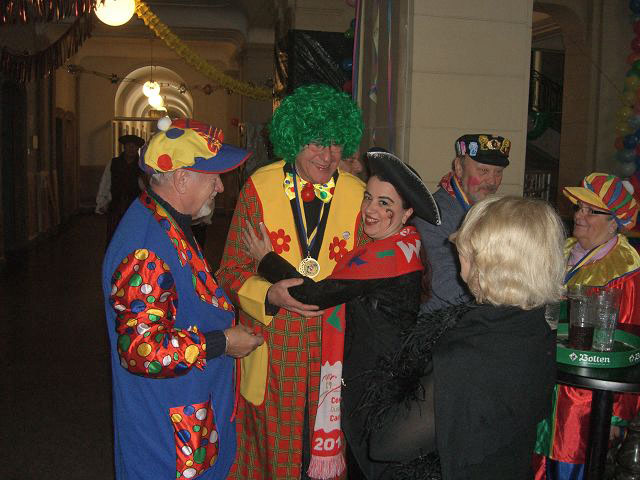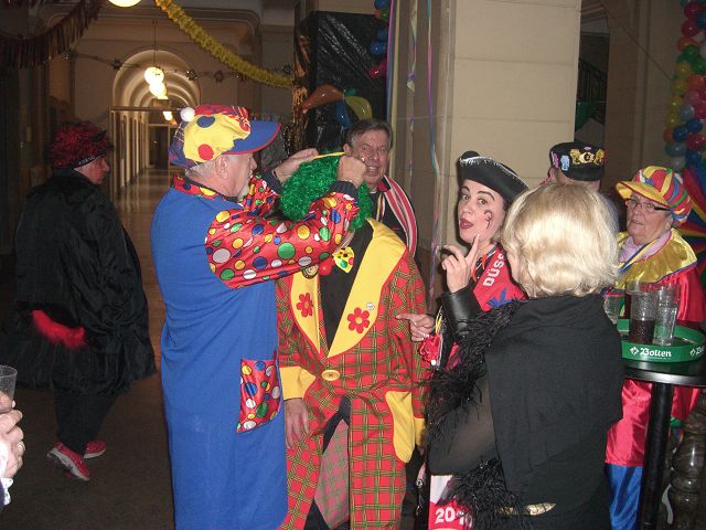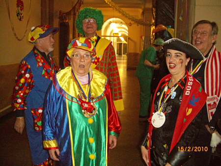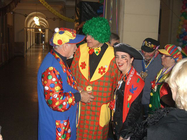 Bekannte Größen des Düsseldorfer Karnevals wie Achim und Olli waren anwesend. Alle sangen, schunkelten und stimmten sich auf den Rosenmontagszug ein. Anschließend sahen sich viele der Gäste dann vor dem Regierungssitz die tollen Wagen des Rosenmontagszuges an und sahen die vielen aktiven Jecken, die dem Start entgegenfieberten. Schließlich hatte Petrus ein Einsehen mit den Frierenden und pünktlich, als sich der Zug gerade in Bewegung setzte, kam die Sonne heraus. Alle bestaunten die bunten Fußgruppen und schmunzelten besonders über die originellen und provokativen Mottowagen.