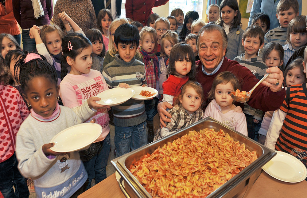 Riesig überrascht und begeistert waren die 72 Kinder der Kita von der katholischen Kindertagesstätte St. Katharina, als Enrico de Angelis vom Ristorante Saltimbocca mit seinen Mitarbeitern ein Nudelmenue spendete, selbst kreierte, kochte und servierte. Die Kinder aßen ihre heiß geliebten Nudeln mit Begeisterung. Für sie war es ein einmaliges Erlebnis, von dem sie noch lange schwärmen werden.