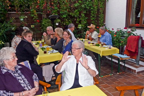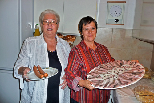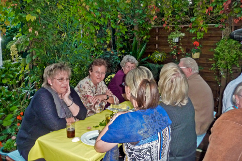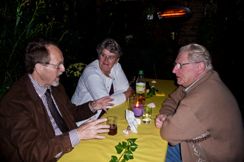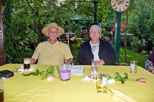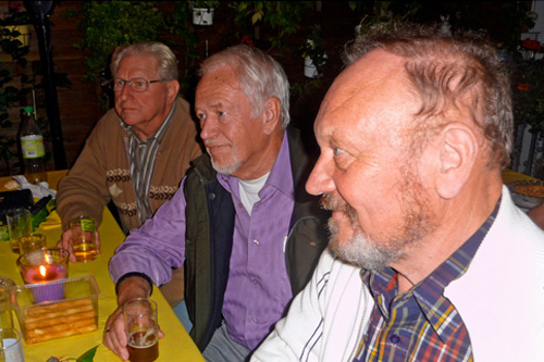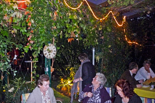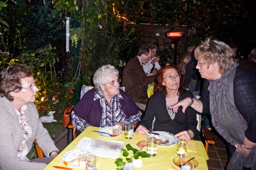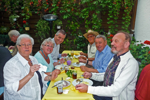 Ein Teil der närrischen Bürgerhilfe traf sich am Samstag, dem 24. September 2011 bei Anni und Dieter Kappel abends im Garten zum Matjes-Essen in der Ostpark-Siedlung, natürlich mit "Pellmännern" und Zwiebeln. Brigitte hatte dazu eine tolle Soße gemacht. Alternativ konnte man selbstgemachten Kartoffelsalat mit Würstchen essen. Zum Nachtisch gab es Käse und Leckeres wie Mousse au Chocolade oder "Rote Grütze" zum Naschen. So ein Hering will natürlich schwimmen und muss begossen werden. Anni und Dieter waren tolle Gastgeber für die 20 köpfige Truppe der jecken Bürgerhilfe. Abends musste man sich zwar etwas anziehen, aber die Stimmung und das Ambiente waren wieder großartig. Natürlich wurde auch über Karneval gesprochen und darüber, dass Fortuna seit langer Zeit mal wieder Tabellenführer wurde. Danke für den unvergesslichen Abend!