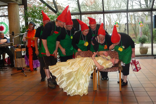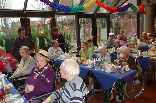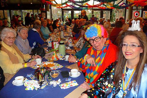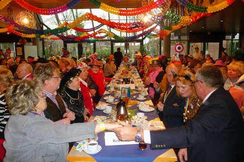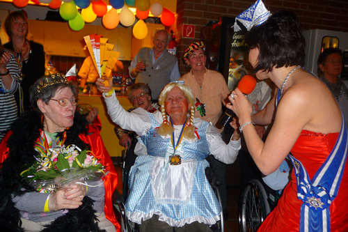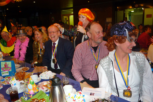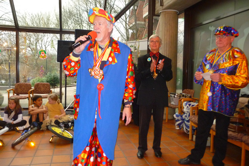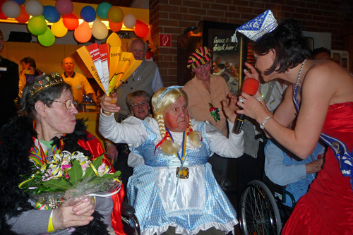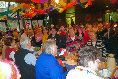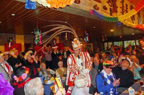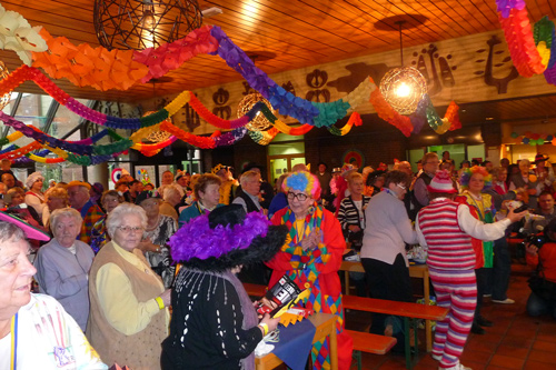 Bei Kaffee und Kuchen fand die große Karnevalssitzung der Bürgerhilfe Gerresheim im DRK-Heim am Lohbachweg statt. Hans Küster rief und alles, was im Düsseldorfer Karneval Rang und Namen hat, kam zu dieser Seniorensitzung für den guten Zweck. Die aus der Bürgerhilfe Gerresheim entstandene Theatergruppe „Jerresheimer jecke Ditzkes“ führte anfangs eine originelle Interpretation von Schneewittchen und die sieben Zwerge auf, einstudiert durch die Choreographin Karin Halinde, die auch die zahlreich erschienene Gerresheimer Prominenz begeisterte. Höhepunkt der Sitzung war der Auftritt des Düsseldorfer Prinzenpaares, Prinz Simon I. und Venetia Rebecca, das mit der Garde Blau Weiß einmarschierte und von den Einradfahrern vom RMSV „Frisch auf“ Düsseldorf eskortiert wurde. Es war einzigartig! Unser Prinzenpaar versprühte Charme und Herzlichkeit, verlieh spontan dem Heimprinzenpaar, Maria Cibulsky und Wolfgang Röckel, und dem Senior mit dem besten Kostüm ihren Sessionsorden. Der ganze Saal stand Kopf, als Prinz Simon spontan auf dem Tisch tanzte. Es schien so, als wenn das Düsseldorfer Prinzenpaar bei dieser tollen Stimmung am liebsten dageblieben wäre.