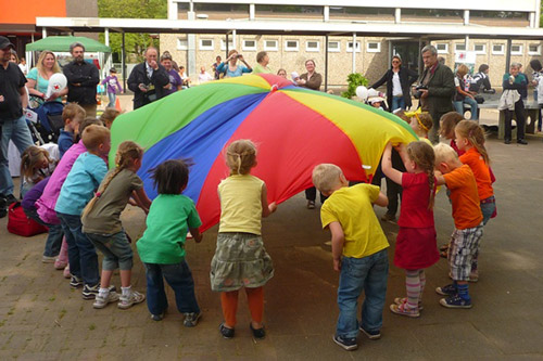 Im Rahmen des European Song Contest (ESC) fand am Gymnasium Gerresheim am 6. Mai 2011 eine Großveranstaltung statt, organisiert von der Bürgerhilfe Gerresheim. Über 30 Vereine, Schulen und Organisationen waren vertreten. Es herrschte mediterranes Wetter. Das Motto lautet „La Primavera – Gerresheim und sein italienischer Süden.“ Eröffnet wurde die Feier von unserer Bürgermeisterin, Frau Dr. Strack-Zimmermann um 16.00 Uhr. Begrüßungsworte sprach auch der kommissarische Schulleiter vom Gymnasium Gerresheim, Dirk Schnelle, nachdem kurz zuvor noch Abiturarbeiten geschrieben wurden, und weiterhin Ulrich Sundag, der Projektleiter der Veranstaltung und gleichzeitig Schatzmeister der Bürgerhilfe Gerresheim. Die Bezirksvertretung 7 war personell sehr stark vertreten, allen voran Hanno Bremer, der Bezirksvorsteher. Politiker aus dem Stadtrat und vom Landtag, wie Dr. Jens Petersen, waren gekommen, ebenso wie viele Persönlichkeiten von Vereinen und Institutionen. Gerresheim zeigte ein „Wir“-Gefühl. Eine Enkelin von La Banca begeisterte die Anwesenden mit italienischen Liedern zu Beginn. Kindergartenkinder von Maria zum Frieden und anderer Kitas sangen, tanzten und zeigten dabei selbst gefertigte Fahnen von ESC-Ländern. Eine tolle Idee war der aus Eierkartons gefertigte Turm von Pisa. Der Grundkurs Italienisch vom Gymnasium Gerresheim hatte unter Leitung von Frau Welter unterschiedliche Stellwände zu Italien erstellt, zum Beispiel zum Festival in San Remo oder Ergebnisse einer Befragung von Italienern, die schon lange in Gerresheim leben und früher an der Glashütte arbeiteten. Sehr viele sportliche Aktivitäten und Demonstrationen wurden angeboten, z. B. ein Hindernisrennen vom Jugendclub Gräulinger Straße, Reiten auf Ponys vom Moschenhof, Hubbelrather Feuerwehrwagen hautnah besichtigen, Tennis-Training, schnuppern beim Judo des Post SV, Spiele mit dem Jugendclub Heyebad, sich mit Spielern von Borussia Düsseldorf auf kleinen Tischtennisplatten messen, sich schminken lassen oder die Vogelhäuschen der JVA bestaunen. Die Jugend-Tanzgarde der Gerresheimer Bürgerwehr begeisterte mit tollen Tänzen.