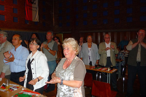 Da Italien im Mittelpunkt stand, gab es nachmittags italienische Köstlichkeiten von der traditionsreichen Trattoria „Mama Lisi“. Diese hat diese Veranstaltung ebenso unterstützt wie die Bezirksvertretung 7, die Gerresheimer Bürgerwehr, das Sana-Klinikum, die Brauerei „Zum Schlüssel“ und viele andere wie das Eiscafe Tina. Am Abend gab es italienische Weine, Spezialitäten von der Taverna „La Rose“, ein Pizza Shuttle der Pizzeria "Bella Italia"und natürlich auch unser geliebtes Altbier. Das Abendprogramm begann um 19.00 Uhr mit der jungen sehr erfolgreichen Tanzgarde des Post SV. Der Sänger Sebastiano Buscarino, bekannt vom Ristorante Saltimbocca, spielte auf der Gitarre und sang einfühlsame Lieder aus seiner Heimat. Danach brachten die Swinging Fanfares den Saal zum Kochen. Ihnen folgte die junge tolle Tanzgruppe von Dance Connection. Zum krönenden Schluss des schönen Tages trat die Gruppe Altschuss auf, natürlich nicht ohne Zugaben. Ulrich Sundag, der Projektleiter, und Hans Küster, der erste Vorsitzende der Bürgerhilfe Gerresheim, konnten sich rückblickend über eine sehr gelungene Veranstaltung freuen.