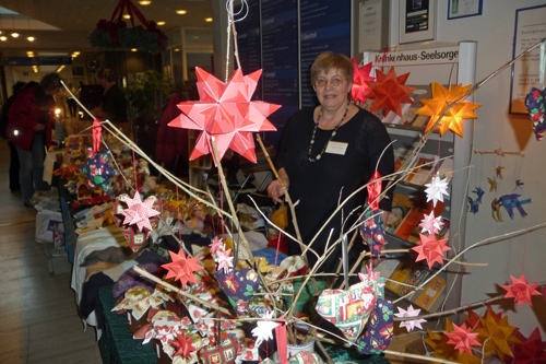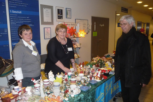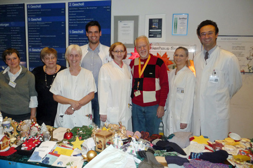 Traditionsgemäß fand, dieses Mal am Freitag, dem 2. Dezember nachmittags und am Samstag, dem 3. Dezember 2011, der Weihnachtsbasar der Bürgerhilfe Gerresheim im Gerresheimer Krankenhaus statt. Der Freitag scheint besser zu sein als der Sonntag, da dann mehr Menschen ihre Lieben im Krankenhaus besuchen. Denn oft werden Patienten freitags nach Hause entlassenen. Der Erlös kommt in diesem der Jahr der Geburtenhilfe-Station des Gerresheimer Krankenhauses zu gute. Dr. Taghavi, Chefarzt der Frauenklinik im Krankenhaus, und viele seiner Kollegen konnten sich über den regen Besuch des Basars überzeugen. Dank gilt Hans Küster, dem erstem Vorsitzenden der Bürgerhilfe Gerresheim, und den vielen Helfern, die derzeit bei den vielen Aktionen der B.H.G. viel Stress haben.