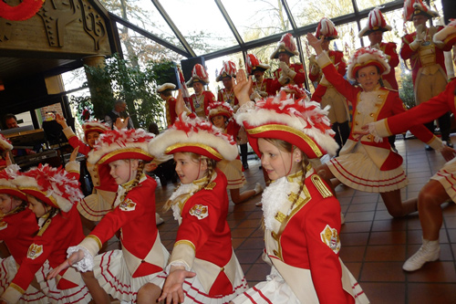 Zu Anfang jedoch machte Klaus Heylen den Eisbrecher mit einem Mottolied und anderen neuen Liedern. Der Mann mit dem Koffer, Dirk Westmeier, alias Puma, brachte den Saal durch seine Witze zum Schmunzeln. Ein weiteres Highlight war der Auftritt der Tanzgarde der K.G. Gerresheimer Bürgerwehr mit ihrem Tanzmariechen, nicht zu vergessen ihr toller Showtanz, sowie den Männern um Stefan Friedel, die alle in Hochstimmung brachten ebenso wie die Gruppe DUBB, die den Saal anheizte. Der Gerresheimer Markus Sobotka, dä Jong met dä dicke Zing, begeisterte ebenso wie die kleine Stella und Zejun Zhao als Polizist, alle drei von „Pänz en de Bütt“. Eine Augenweide war die Ehrengarde des Oberbürgermeisters der Stadt Düsseldorf mit den tollen Tanzmariechen. Die Mukeköpp heizten noch einmal die Stimmung an, natürlich auch mit dem Mukeköpp-Express, der durch den ganzen Saal ging. Judith, die Oldietante, begeisterte mit ihren Lieder, so dass der ganze Saal mitsang. Die Düssel-Disharmonika, als krönender Abschluss, sangen natürlich auch ihre Fortuna-Lieder und zusammen mit Markus Sobotka das Gerresheim-Lied.