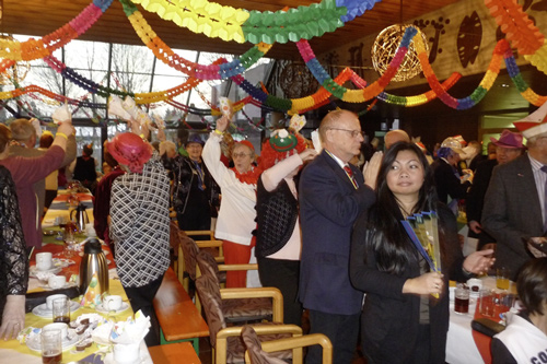 Natürlich wurde wieder ein Heimprinzenpaar gekürt. Ute Schulz, die Schirmherrin der Bürgerhilfe Gerresheim, und Lothar Bochem unterstützten Hans Küster bei der Moderation des Programms. Die Hans Klostermann Combo sorgte für den musikalischen Rahmen. Besonderer Dank gilt allen Künstlern, da sie für den guten Zweck ohne Gage auftraten, weiterhin den vielen Helfern und Freunden der Bürgerhilfe Gerresheim sowie natürlich auch Frau Stieler, der Leiterin des DRK-Heimes, mit ihrem Team. Hans Küster hatte eine tolle Sitzung organisiert.