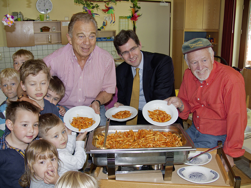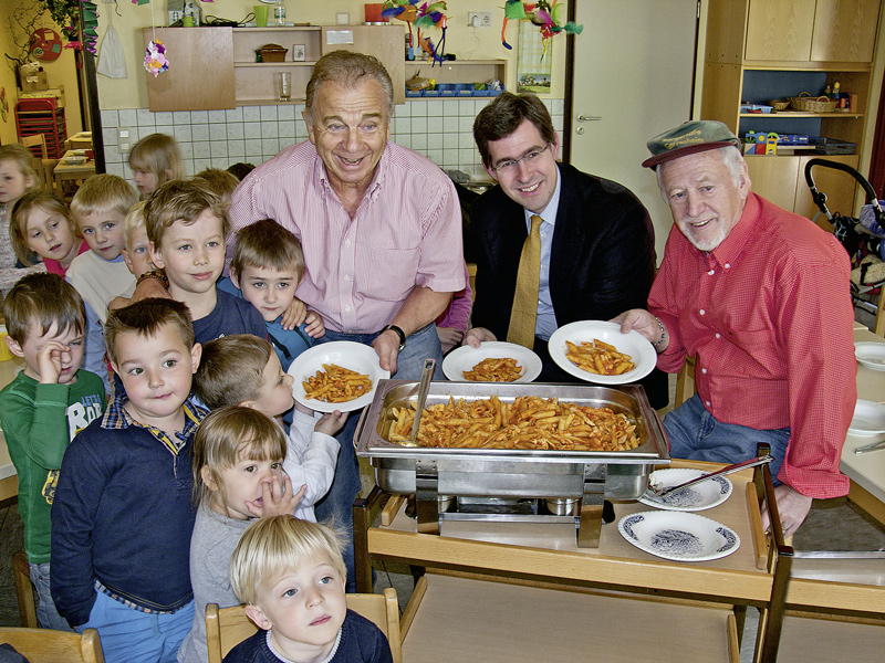 Enrico de Angelis, vom Ristorante Saltimbocca und mehrfacher Sieger der „Tour de Menue“ zeigte wieder einmal ein Herz für Kinder, als er am Mittwoch, dem 16. Mai 2012 die Kids des katholischen Kindergartens der Pfarrei Maria vom Frieden zum Nudelessen einlud. Für die Kinder herrschte Festtagsstimmung. Hans Küster, der 1. Vorsitzende der Bürgerhilfe Gerresheim und Dr. Jens Petersen, der zweite Vorsitzende wie Hanno Bremer, der Bezirksvorsteher im Stadtbezirk 7, und Wolfgang Müller staunten nicht schlecht, weil die Kids mehrmals Nachschlag verlangten und Massen von Nudeln vertilgten. Für die Kindergartenbetreuer und Pädagogen war es eine willkommene Abwechslung. Die im Kindergarten geleistete Arbeit des Personals kann nicht genug gewürdigt werden. Als Enrico de Angelis zum Schluss dann noch als I-Tüpfelchen den Schokoladenpudding servierte, war kein Halten mehr. Für die Kids wurde dieses Essen zu einem unvergesslichen Erlebnis, von dem sie noch lange schwärmen. Danke Enrico für diese und andere Aktionen für die Bürgerhilfe!