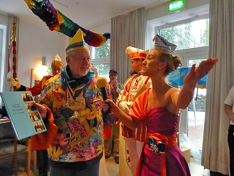 Als am Dienstag, dem 22. Januar die traditionelle Karnevalsveranstaltung der Bürgerhilfe Gerresheim im Ferdinandheim stattfand, feierte genau an diesem Tag Heimbewohnerin Renate König ihren 100. Geburtstag und außerdem wurde auch Heimbewohnerin Hedwig Lückel 97 Jahre alt, sozusagen eine Sensation. Beide wurden durch das Düsseldorfer Prinzenpaar, Prinz Carsten I. und Venetia Ursula, überrascht und mit einem Orden geehrt, dazu auch das frisch gekürte Heimprinzenpaar, Lieselotte Schweikart (82 Jahre) und Rolf Willms (69 Jahre). Weiterhin tauchte noch als zusätzliche Überraschung das Comitee Düsseldorfer Carneval auf, angeführt durch ihren Präsidenten Josef Hinkel, um zu gratulieren und für Stimmung zu sorgen. Die Geburtstagskinder strahlten und alle Anwesenden waren begeistert, um nicht zu sagen gerührt. Dieses Ereignis mit den Geburtstagskindern ist etwas für die Annalen des Düsseldorfer Karnevals. Dazu hatte Venetia Ursula als Gerresheimerin sozusagen ein Heimspiel und beschenkte die Bewohner mit Clowns, die ihr Vater extra gebacken hatte. Das junge sympathische Prinzenpaar begeisterte und verteilte die Clowns höchstpersönlich. Hans Küster, der Vorsitzende der Bürgerhilfe Gerresheim, Ute Schulz, die moderierte, Monika Meister, die Heimleiterin, und alle Anwesenden waren mehr als begeistert. Natürlich gab es auch Orden.