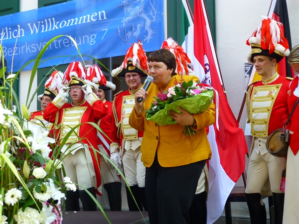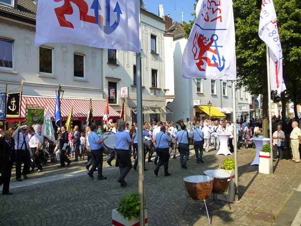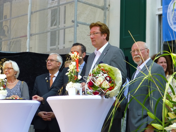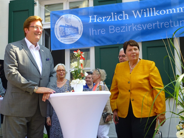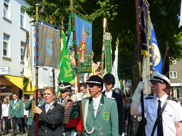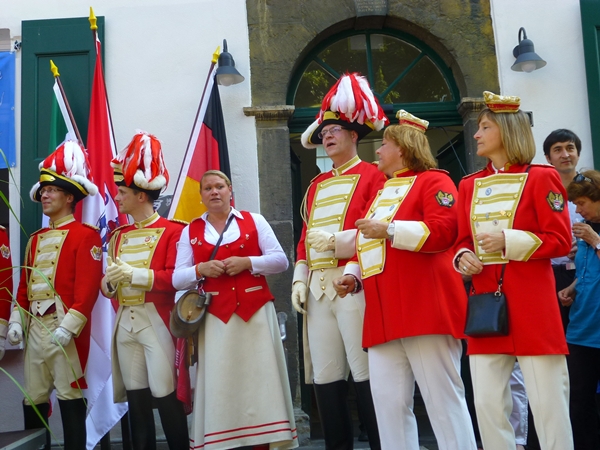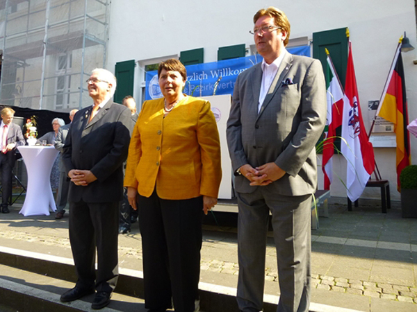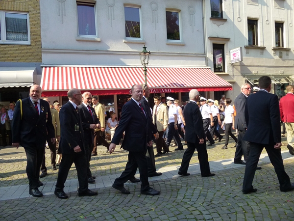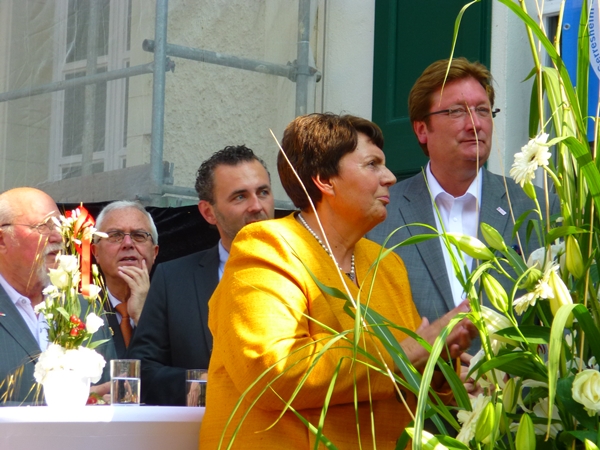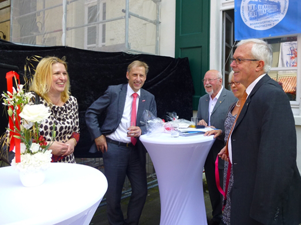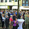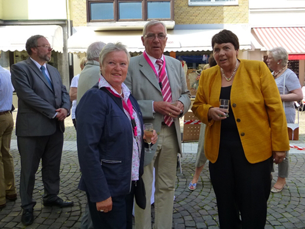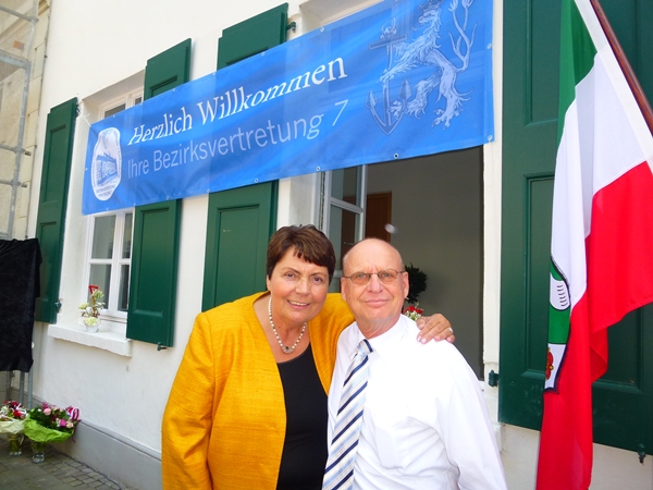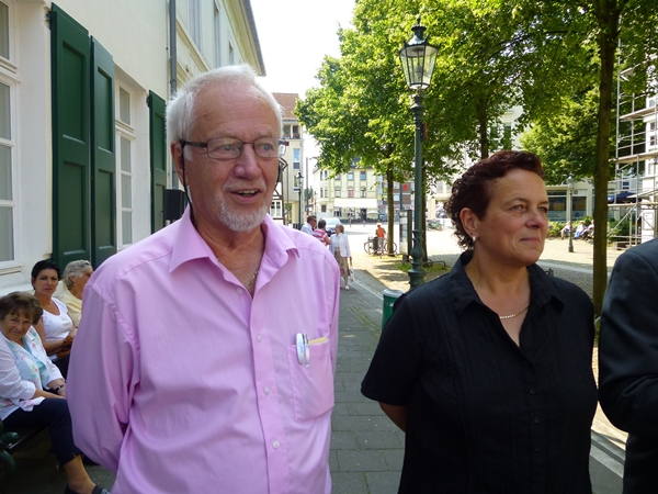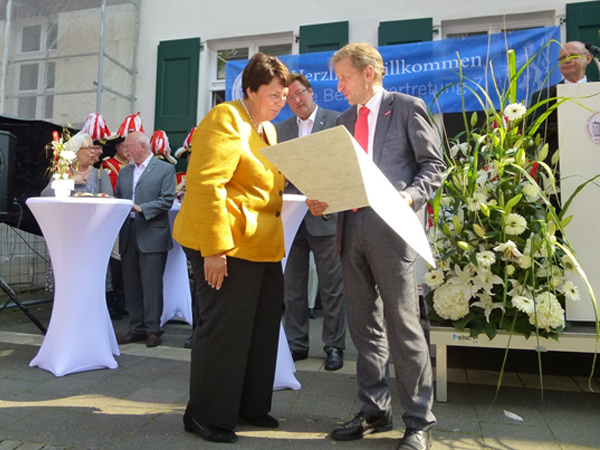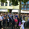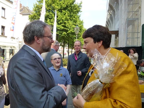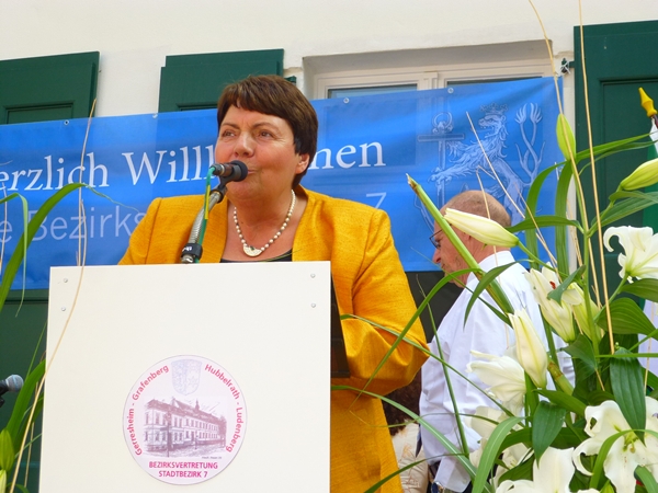 Ute Schulz, in Gerresheim meist „Uns Ute“ genannt, feierte bei strahlendem Sonnenschein ihr 50 jähriges Berufsjubiläum zunächst vor dem Gerresheimer Rathaus, wo Ute geehrt wurde. Bezirksvorsteher Hanno Bremer und unser Oberbürgermeister Dirk Elbers lobten ihr Engagement in den vielen Gerresheimer Vereinen, in denen sie ehrenamtlich aktiv ist und sich für ihre Mitmenschen und soziale Belange einsetzt. Im Anschluss an die Laudatio bekam die Schirmherrin der Bürgerhilfe Gerresheim die Ehrenmedaille der Bezirksvertretung verliehen. Prominente aus allen Parteien, aus ihrer Branche und der Wirtschaft wie viele Gerresheimer Bürger, Vereinsvertreter und nahe Verwandte waren gekommen, um Ute Schulz zu ehren. Sogar aus der Nähe von Meschede, wo sich Ute bei der Jagd entspannt, war man sehr zahlreich extra mit einem vollen Bus gekommen. Herr Fuhrmann überreichte ihr im Namen des Berufsverbandes stellvertretend den silbernen Meisterbrief zum 50 jährigen Berufsjubiläum und lobte ihren Einsatz und ihre Treue. Die vielen Vereine, in denen Ute tätig ist, sagten mit einer von den Vereinsvorsitzenden unterschriebenen Urkunde symbolisch danke. Eine einzigartige Aktion. Zu aller Überraschung überreichte der Bundestagsabgeordnete Thomas Jarzombek eine Biographie unserer Bundeskanzlerin Angela Merkel, in der eine handschriftliche persönliche Widmung stand. Zwischendurch wurden Häppchen und Getränke von überwiegend Mitgliedern der Bürgerhilfe gereicht. Stefan Friedel brachte mit Mitgliedern der Gerresheimer Bürgerwehr ein musikalisches Ständchen, ein Potpourri Düsseldorfer Brauchtumslieder. Die Schützengruppen, die zu Anfang sehr zahlreich aufmarschierten und musikalische Einlagen brachten, ehrten damit Ute Schulz und Pfarren Sülzenfuß, der sein 40 jähriges Priesterjubiläum in diesen Tagen feiert. Höhepunkt war der große Zapfenstreich, der mit der Nationalhymne endete. Diese Ehrung und Wertschätzung wird nur wenigen in Gerresheim zu Teil. Ute Schulz bedankte sich sichtlich gerührt, besonders auch bei ihrem Geschäftsteam mit Frau Wippermann und weiterhin bei Frau von Rappert, der Verwaltungschefin im Gerresheimer Rathaus, für die tolle Organisation und die vielen Überraschungen.
