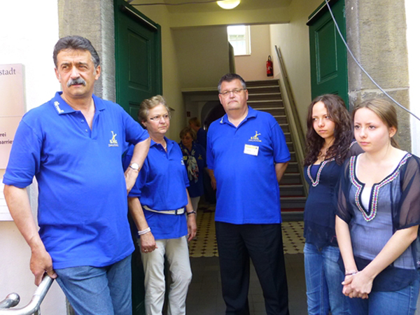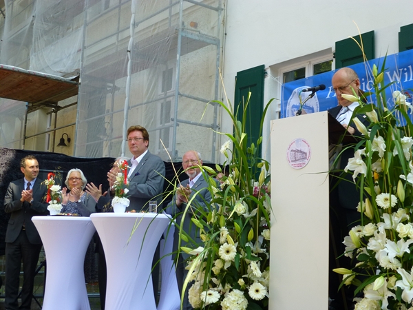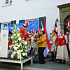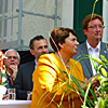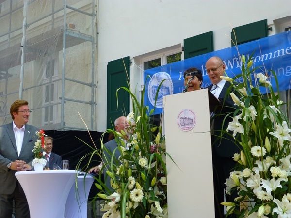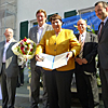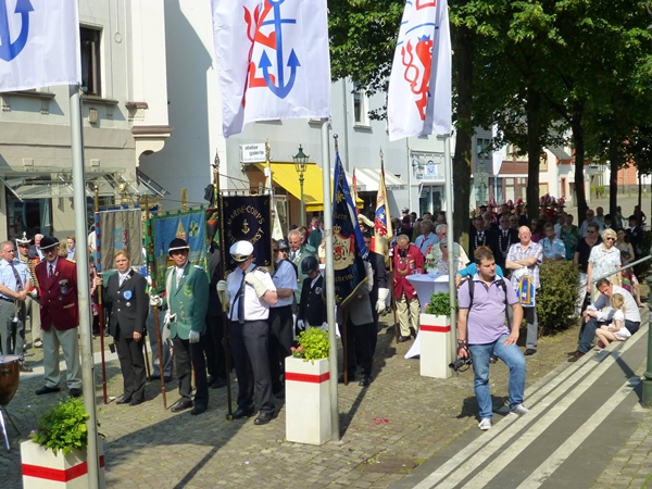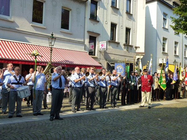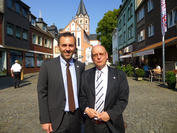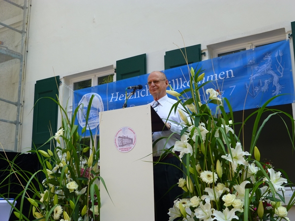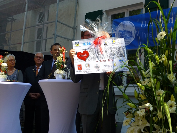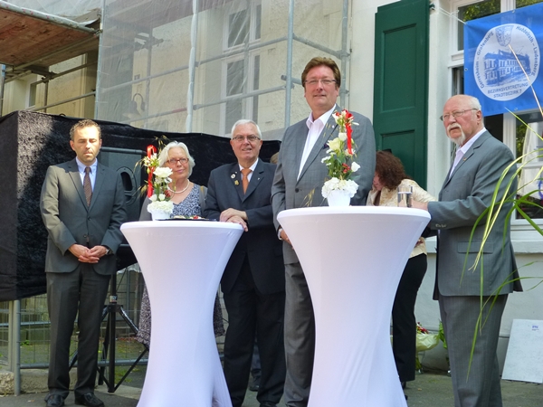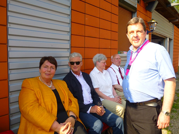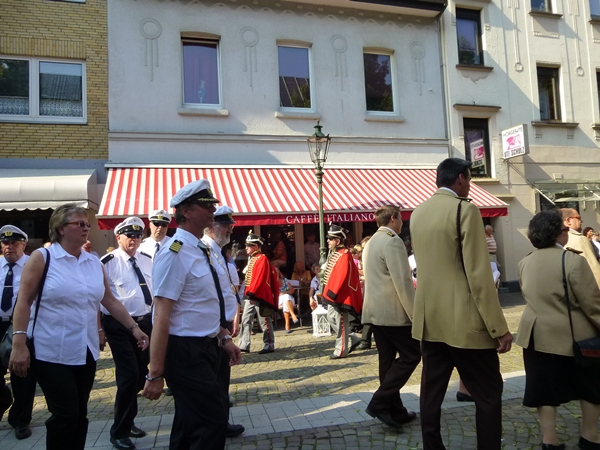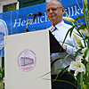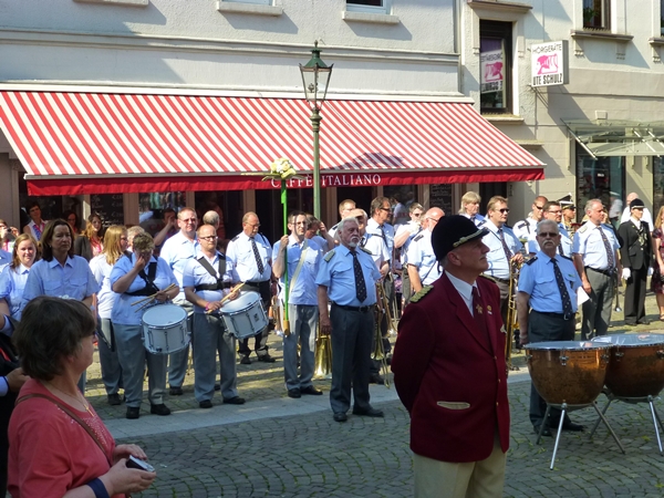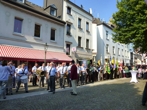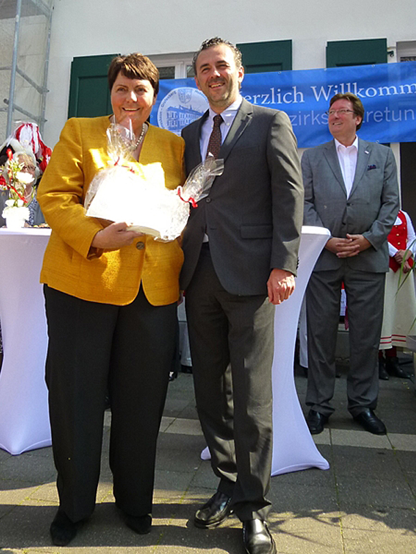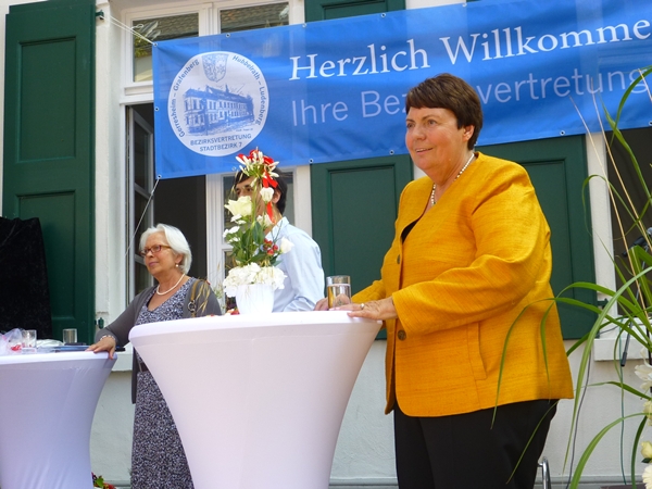 Ute Schulz, in Gerresheim meist „Uns Ute“ genannt, feierte bei strahlendem Sonnenschein ihr 50 jähriges Berufsjubiläum zunächst vor dem Gerresheimer Rathaus, wo Ute geehrt wurde. Bezirksvorsteher Hanno Bremer und unser Oberbürgermeister Dirk Elbers lobten ihr Engagement in den vielen Gerresheimer Vereinen, in denen sie ehrenamtlich aktiv ist und sich für ihre Mitmenschen und soziale Belange einsetzt. Im Anschluss an die Laudatio bekam die Schirmherrin der Bürgerhilfe Gerresheim die Ehrenmedaille der Bezirksvertretung verliehen. Prominente aus allen Parteien, aus ihrer Branche und der Wirtschaft wie viele Gerresheimer Bürger, Vereinsvertreter und nahe Verwandte waren gekommen, um Ute Schulz zu ehren. Sogar aus der Nähe von Meschede, wo sich Ute bei der Jagd entspannt, war man sehr zahlreich extra mit einem vollen Bus gekommen. Herr Fuhrmann überreichte ihr im Namen des Berufsverbandes stellvertretend den silbernen Meisterbrief zum 50 jährigen Berufsjubiläum und lobte ihren Einsatz und ihre Treue. Die vielen Vereine, in denen Ute tätig ist, sagten mit einer von den Vereinsvorsitzenden unterschriebenen Urkunde symbolisch danke. Eine einzigartige Aktion. Zu aller Überraschung überreichte der Bundestagsabgeordnete Thomas Jarzombek eine Biographie unserer Bundeskanzlerin Angela Merkel, in der eine handschriftliche persönliche Widmung stand. Zwischendurch wurden Häppchen und Getränke von überwiegend Mitgliedern der Bürgerhilfe gereicht. Stefan Friedel brachte mit Mitgliedern der Gerresheimer Bürgerwehr ein musikalisches Ständchen, ein Potpourri Düsseldorfer Brauchtumslieder. Die Schützengruppen, die zu Anfang sehr zahlreich aufmarschierten und musikalische Einlagen brachten, ehrten damit Ute Schulz und Pfarren Sülzenfuß, der sein 40 jähriges Priesterjubiläum in diesen Tagen feiert. Höhepunkt war der große Zapfenstreich, der mit der Nationalhymne endete. Diese Ehrung und Wertschätzung wird nur wenigen in Gerresheim zu Teil. Ute Schulz bedankte sich sichtlich gerührt, besonders auch bei ihrem Geschäftsteam mit Frau Wippermann und weiterhin bei Frau von Rappert, der Verwaltungschefin im Gerresheimer Rathaus, für die tolle Organisation und die vielen Überraschungen.
