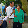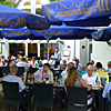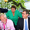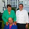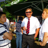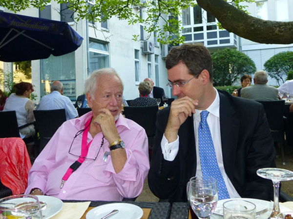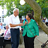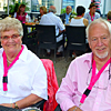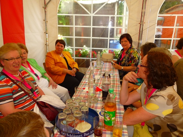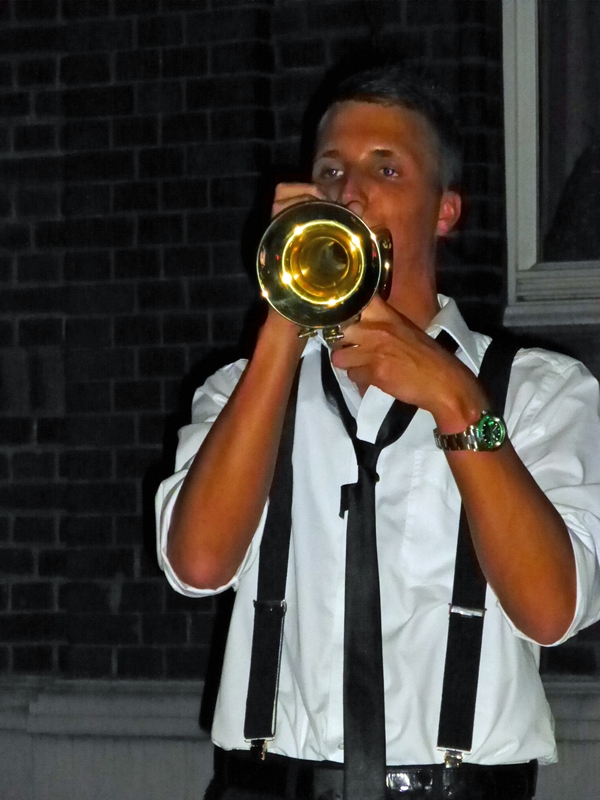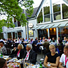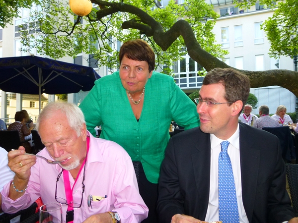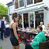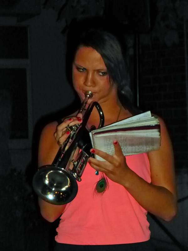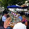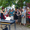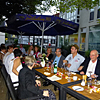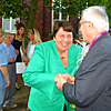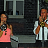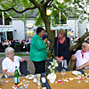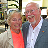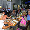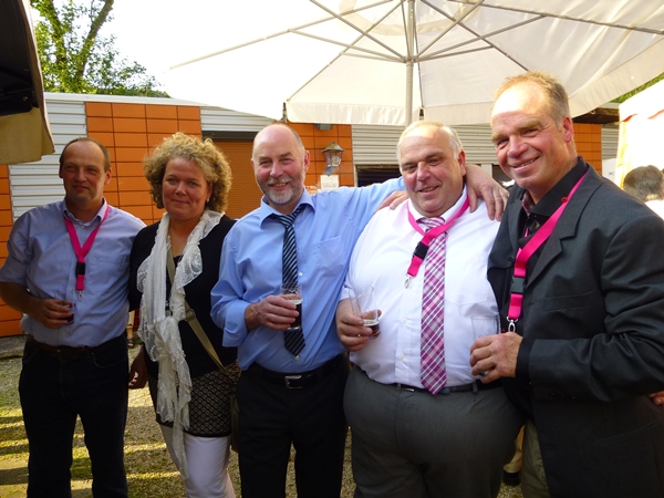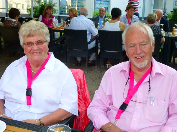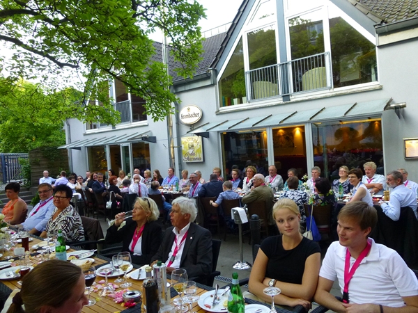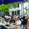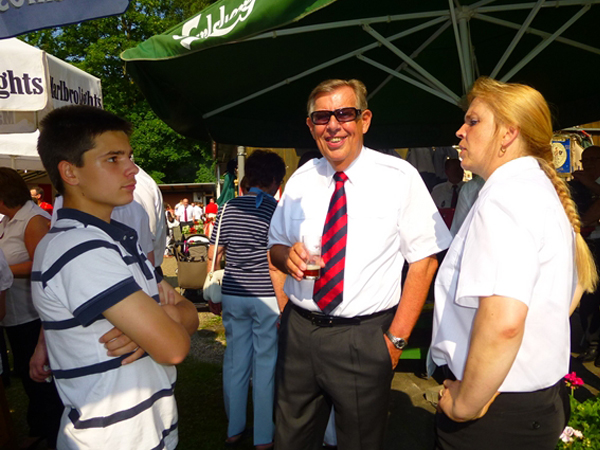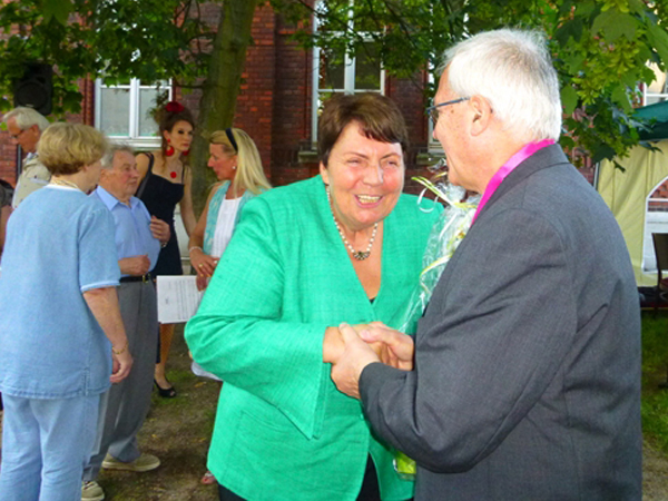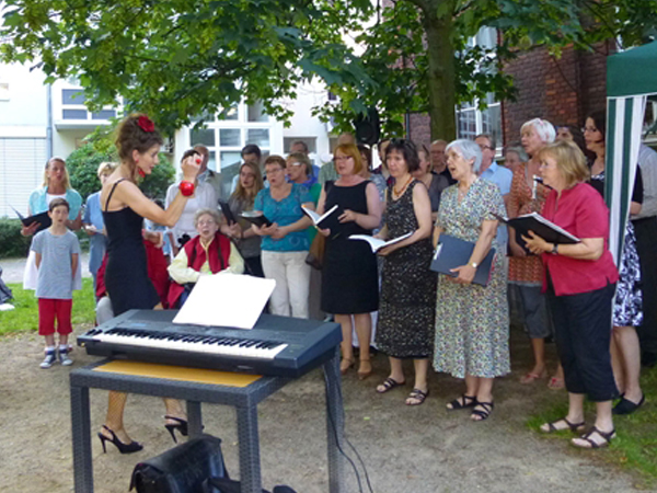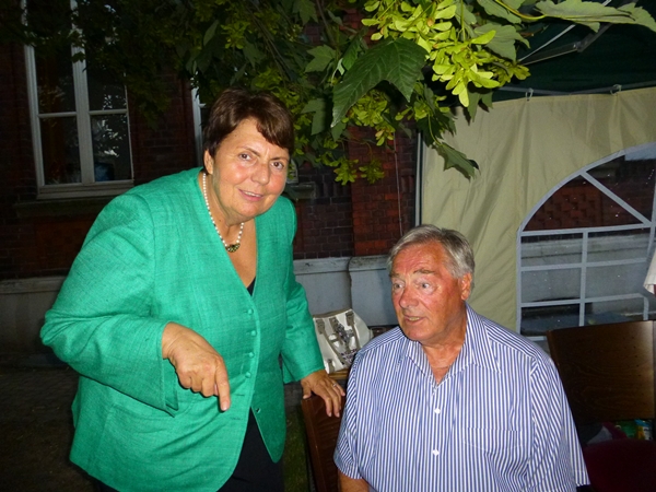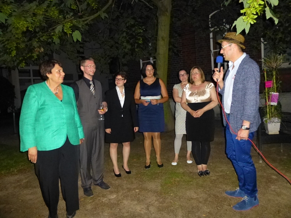 Während es auf dem Schützenplatz rege weiter ging, feierten geladene Gäste dann noch in der Trattoria Da Giacomo weiter. An Stelle von Geschenken bat Ute im Vornherein um eine Spende für die Bürgerhilfe Gerresheim. Hieran sieht man wieder, wie sozial Ute eingestellt ist, wie es unser Oberbürgermeister Dirk Elbers trefflich nachmittags schon sagte. Als Überraschung sang hier ein Chor der Gustav-Adolf-Gemeinde. Dadurch motiviert erzählte Ute Schulz einiges aus früheren Zeiten. Während der Menügänge stellte sie einige der Gäste vor, so zum Beispiel einige aus ihrer Branche, Einheimische wie Dr. Birken, Bäckerehepaar Schmalz oder Apothekerehepaar Herbort von der Rats-Apotheke. Ralph Marquis, begleitet von seiner Frau, brachte nach dem Essen ein Ständchen und sang Düsseldorfer Lieder. Anschließend wurde den beiden Geburtstagskindern, darunter Giacomo selbst, musikalisch unter Wunderkerzen gratuliert. Hans Küster, Dr. Petersen mit Frau und Ehepaar Brück, stellvertretend für die Bürgerhilfe, waren bei angenehmen Temperaturen wie alle Gäste begeistert von der Atmosphäre. Kevin Küster und seine Freundin brachten gegen Ende des Abends noch ein Trompetenständchen dar. Die Angestellten von Ute Schulz hatten sich noch eine Überraschung für Ute ausgedacht. Joachim Heik und Alfred Schulz brachten zwischendurch immer wieder musikalische Einlagen. Zum Schluss gilt es nochmals Ute Schulz danke zu sagen für den Tag, ihren Einsatz für die Bürgerhilfe Gerresheim und den Stadtteil.