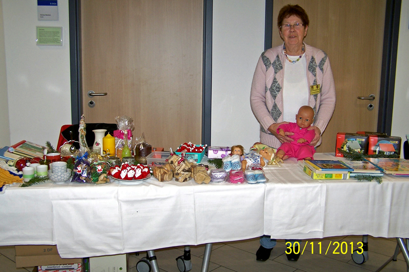 Traditionell fand und findet der Weihnachtsmarkt der Bürgerhilfe Gerresheim an zwei Samstagen ab 9.30 Uhr im Sana-Klinikum des Gerresheimer Krankenhauses statt. Hier konnte man tolle Schnäppchen machen. Nett verpackte kleine Geschenke, Basteleien, Marmeladen, Plätzchen Puppen, Strick- und Häkelsachen, andere Handarbeiten und vieles andere. Wer den ersten Samstag verpasst hat, kann sich noch am 7. Dezember umsehen, liebevoll beraten von den emsigen Damen der Bürgerhilfe Gerresheim. Einen Einblick geben die Bilder von Brigitte Piwolinski.