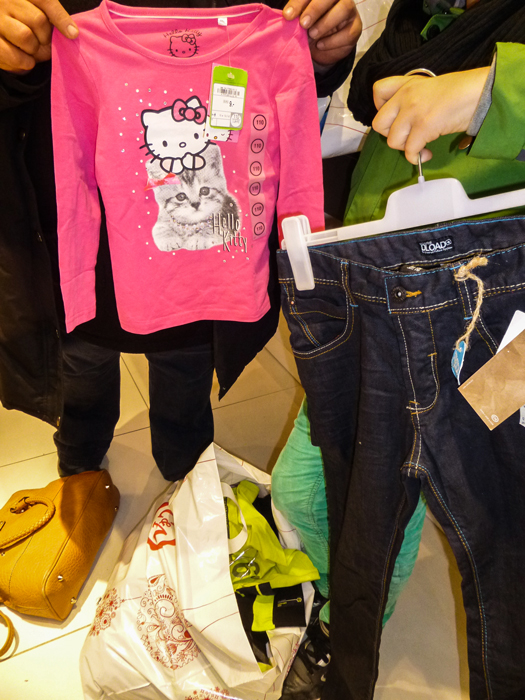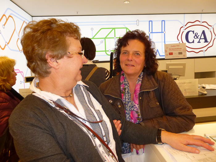 Danach zogen alle mit Spielzeugen und Ballons zur Einkleidung nach C&A. Anfangs kam es etwas zum Gedränge, da jeder Name kontrolliert werden musste und jedes der 28 Kinder einen Anhänger für die Zeit des Aussuchens bekam. Diese Aktion wurde von der Deutschen Bank unterstützt. Heinz Lückerath, dessen Filialdirektor von der Benderstraße, kannte das Procedere schon. Beate Schwinges von der Stiftung Düsseldorf/ Niederrhein der Deutschen Bank und auf der Königsallee aktiv kannte diese Aktion nur vom Hören und Sagen und erlebte einen interessanten Nachmittag, den sie von Anfang an mit McDonald's beginnend miterlebte. Die Bürgerhilfe Gerresheim und die Helfer legten großen Wert darauf, dass sich jedes Kind seine Wunschkleidung für jeweils 100 Euro selbst aussuchte und Zeit dafür nahm. Anschließend zeigten mehrere Kids stolz, was sie ausgewählt hatten, um warm durch den Winter zu kommen, und bedankten sich bei verschiedenen Mitgliedern der Bürgerhilfe. Sicherlich muss bei jeder Einkleidung eine Auswahl getroffen werden, dabei müssen unterschiedliche Gesichtspunkte berücksichtigt werden, damit möglich viele der in Betracht kommenden Familien berücksichtigt werden können. Dank gilt an dieser Stelle den edlen Spendern und Helfern, was keine Selbstverständlichkeit ist.