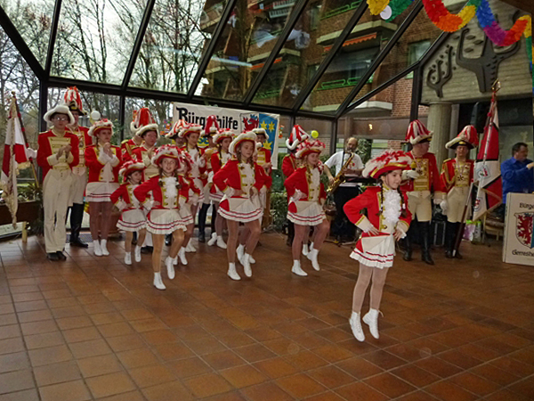 Im Gerresheimer DRK-Zentrum gab es Samstag, dem 1. Februar 2014 eine Karnevalsveranstaltung der Superlative und weil die Bürgerhilfe Gerresheim in diesem Jahr ihr 25jähriges Bestehen feiert, bekamen alle Anwesenden zunächst noch ein Präsent überreicht. Mit dem Einzug der Gerresheimer Bürgerwehr und ihres Präsidenten Stephan Friedel kam von Anfang an Power in die Sitzung und die Jugendtanzgruppe war ein Augenschmaus. Bei Kaffee und Kuchen wurde der tolle Showtanz nach Motiven von Mary Poppins genossen. Jana eroberte als Kinderhoppeditz die Herzen aller im Saal. Mit ihren 8 Jahren ließ sie in ihrer Büttenrede das Jahr Revue passieren. Sie ist eine der Talente wie Rogi, der kurz vor Schluss eine Rede hielt, wobei man mitdenken musste und wo alle still lauschten, oder Sophie und Caro, die einen tollen Schlusspunkt setzten. Nachdem die CD nicht funktionierte, sangen sie aus dem Stehgreif altbekannte Düsseldorfer Lieder, wobei der ganze Saal mitschunkelte. Auch Markus Sobotka, jetzt "Dä Jong us Jerresheim" begeisterte. Im originellen Schlossturm-Kostüm hielt er eine Büttenrede, in die er zwischendurch Lieder zum Mitsingen einstreute, einfach beeindruckend.