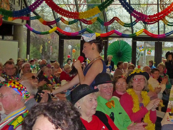 Natürlich durfte dabei Ralpf Marquis, der Barde vom Rhein, mit seinen bekannten Düsseldorfer Liedern nicht fehlen. Er musste ebenso Zugaben geben wie Marita Weiss, dat Marita, und Judith, die Oldie-Tante, die neben ihren bekannten Songs, neue Titel vorstellten und dabei durch die Reihen gingen und zum Mitsingen animierten. Zwischendurch kam der Mann mit dem Koffer, Dirk Westmeier, besser bekannt als Puma, der mit seinen Pointen, die Anwesenden zum Schmunzeln brachte. Viele Mitglieder der Bürgerhilfe Gerresheim und Helfer vom DRK-Zentrum waren bei dieser Sitzung sehr engagiert, damit sich alle wohl fühlten. Alfred Schulz und Joachim Heik sorgten für den musikalischen Rahmen und vorweg schon wie zwischendurch für eine tolle Stimmung.