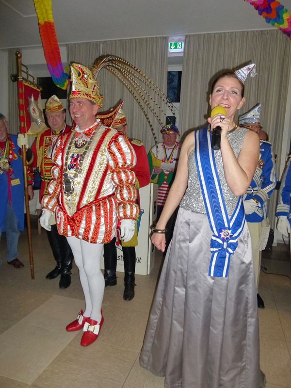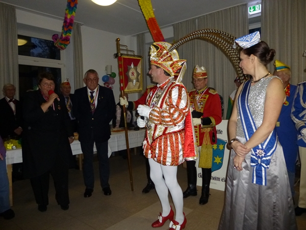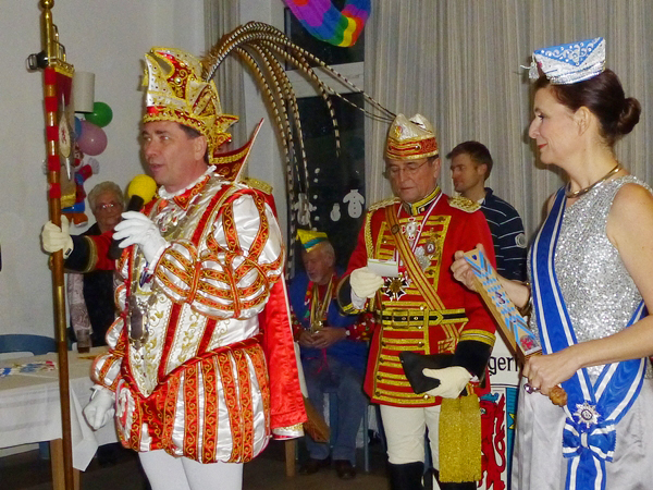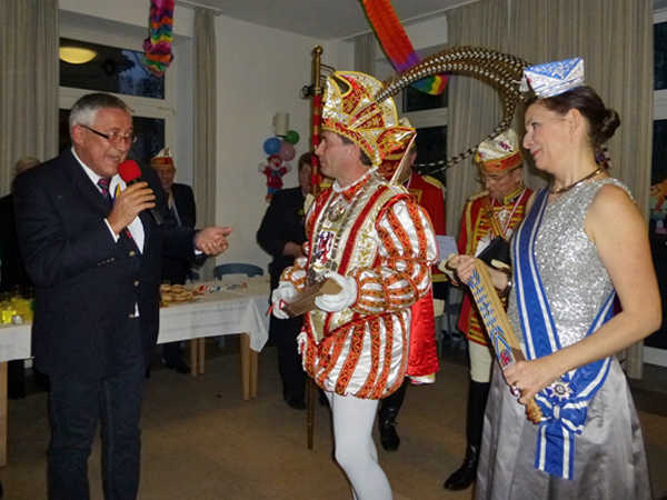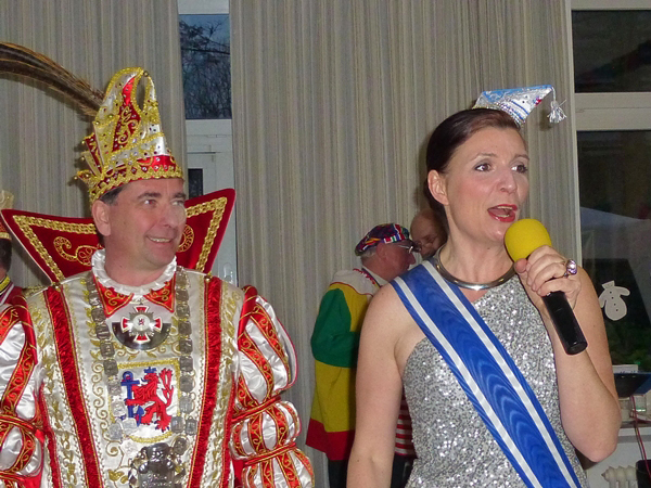 Traditionsgemäß wurde in Person von Jutta Abu-Shanab, 78 Jahre, und Walter Raddatz, 77 Jahre, wieder ein Heimprinzenpaar gekürt, das die Sitzung genoss. Höhepunkt für die Beiden war, als das Düsseldorfer Prinzespaar, Michael I. und Venetia Pia, Ihnen ihren Orden verlieh wie auch einer 101jährigen Seniorin und einem Geburtstagskind gratulierte. Das Prinzenpaar ging durch die Reihen, setzte sich und schunkelte mit den Senioren begeistert mit. Amüsant moderierte Ute Schulz, die Schirmherrin der Bürgerhilfe Gerresheim, das bunte Programm. Lothar Bochem begann pünktlich um 15.11 Uhr mit dem Lied der Bürgerhilfe. Klaus Heylen, also ich in Person des Pressesprechers, sang unter anderem als Premiere das selbst getextete Lied "Engel und Bengel". Der Mann mit dem Koffer, Dirk Westmeier, besser bekannt als Puma, erzählte in seiner witzigen Rede auch von Fortuna. Dat Marita, Marita Weiss, sang neben bekannten und neuen Liedern, mit Alfred Schulz zusammen das Lied "Wolke 7" und Judith, die Oldietante, brachte auch tolle alte und neue Lieder, die sehr gut ankamen. Die Tanzgarde der Gerresheimer Bürgerwehr war ein weiteres Highlight. Hervorzuheben war dabei der Showtanz mit Motiven von Mary Poppins. De Jong us Jerresheim, Markus Sobotka, kam im Schlossturmkostüm. In seiner lustigen Rede hatte er altbekannte Lieder eingebaut, die alle mitsangen. Vor und nach dem Düsseldorfer Prinzenpaar lief das Sängerduo Flönz und Röggelchen zur Hochform auf und musste wie andere auch Zugaben geben. Thomas Mühlenbein von den 3 Köbessen sang sein Lied über Kappes Hamm als Uraufführung und brachte den Saal mit altbekannten Liedern zum Rasen. Viele Gerresheimer Persönlichkeiten wie Rolf Buschhausen oder Heinz Lückerath und Vertreter von Vereinen waren zugegen. Alfred Schulz und Joachim Heik sorgten für den erfrischenden musikalischen Rahmen. Frau Meister, die Leiterin des Ferdinandheimes, bedankte sich zum Schluss für das großartige Programm, das Hans Küster und seine Mannen auf die Beine gestellt hatten. Dafür gab es Lob von allen Seiten. Wie immer gab es zum krönenden Abschluss traditionsgemäß den schon berühmten Kartoffelsalat mit Bockwürsten und Frikadellen. Danke nochmals den vielen helfenden Händen der BHG, den aufopferungsvollen Betreuern des Ferdinandheimes und den unendgeldlich auftretenden Künstlern.