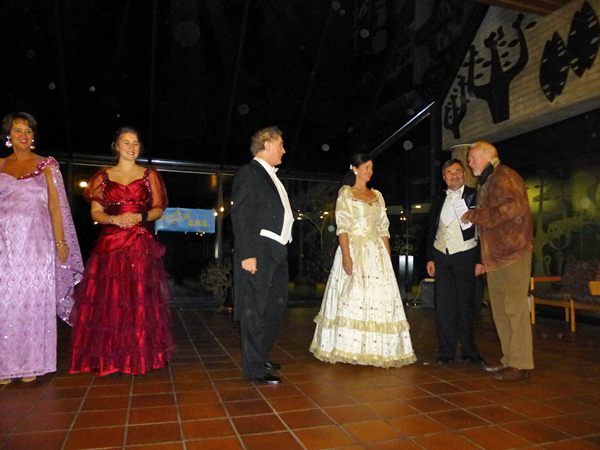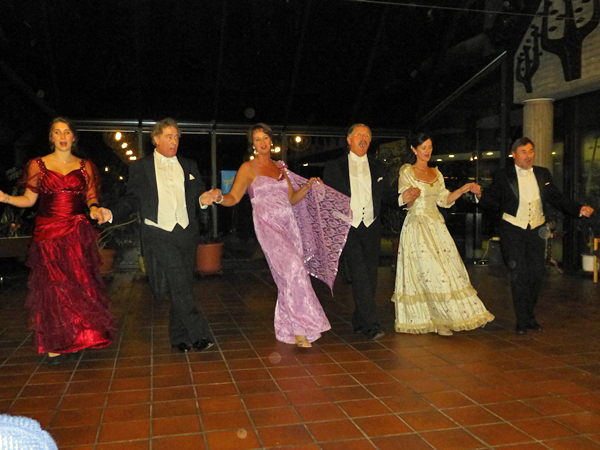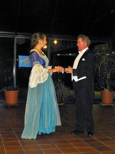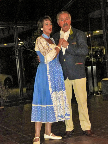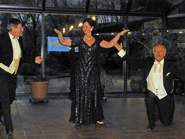 Adolph Brune, der Leiter des Ensemble, führte charmant durch das Programm, erzählte Anekdoten zu einigen Operetten und trat selber auf, so zum Beispiel in mehreren Duetten mit Anna Bobach, einer jungen Debütantin, die alle Anwesenden durch ihr Aussehen und ihre verzaubernde Stimme beeindruckte, ob es : "Hergott was ist denn heut' los?" aus "Gräfin Mariza" von Emmerich Kálmán war oder zum Beispiel "Niemand liebt dich so wie ich" aus "Paganini" von Franz Lehár. Wolfgang Krupp begeisterte unter anderem mit "Wenn ich einmal reich wär'." Aus "Anatevka" von Jerry Bock brillierte Polly Olszak mit "Ja das Temprament" aus "Maske in Blau" von Fred Raymond. Tanja Ellrich und Dieter Schmitz traten wie alle anderen Ensemblemitglieder mehrmals auf. Dabei kamen alle Anwesenden bei ihrem Lied "Im weißen Rössel am Wolfgangsee" von Ralph Benatzky ins Schwärmen. Insgesamt gab es 22 Programmpunkte. Nachdem zum Abschluss die Herren des Ensembles feststellten: "Ja das Studium der Frauen ist schwer" aus "Die lustige Witwe" von Franz Lehár, gab es unter tosendem Beifall noch zwei Zugaben, für alle Anwesenden ein unvergesslicher Nachmittag.