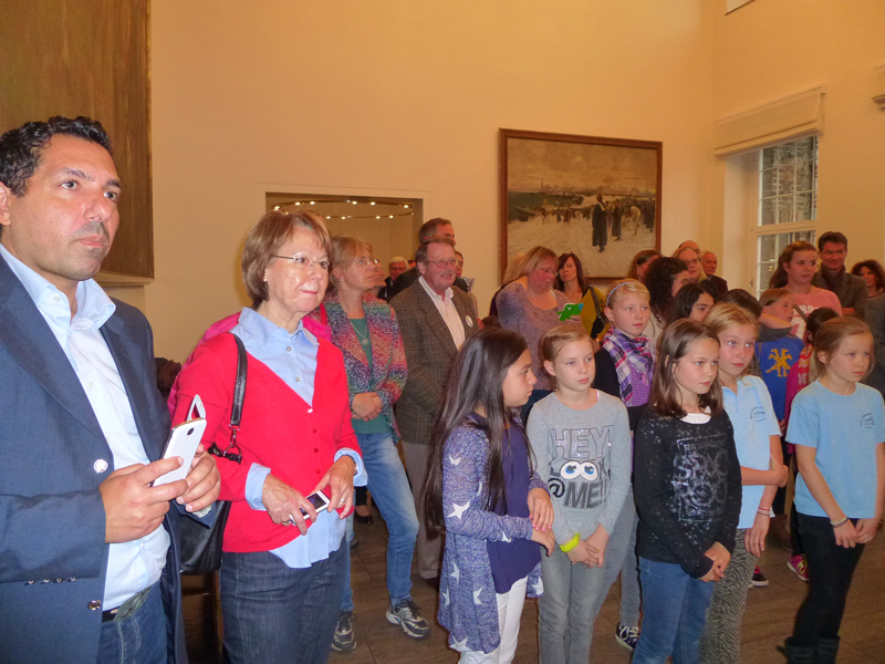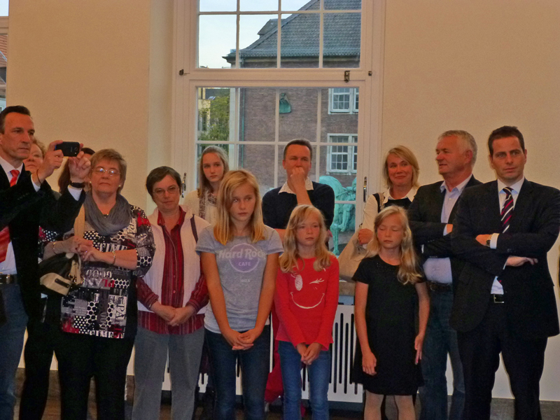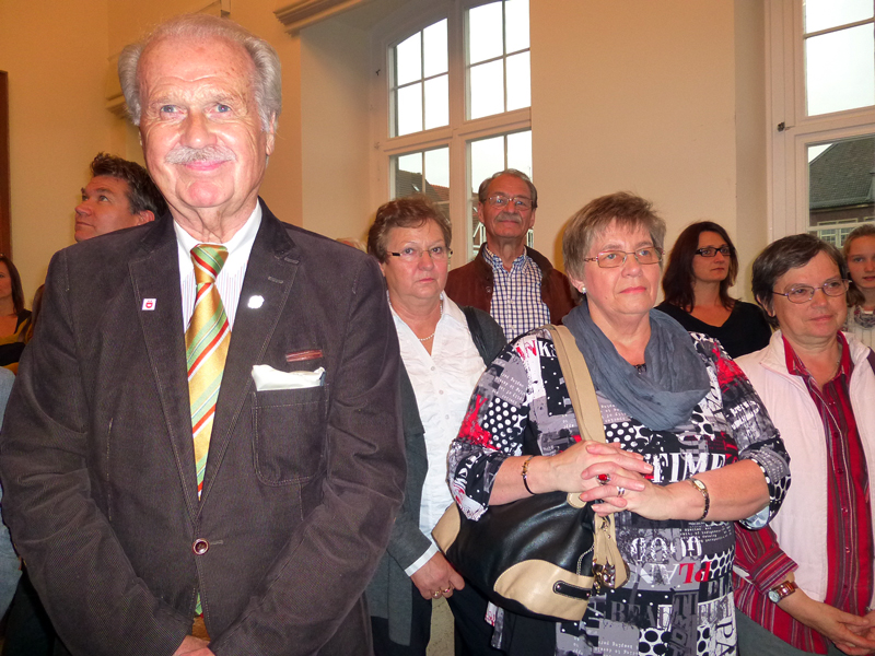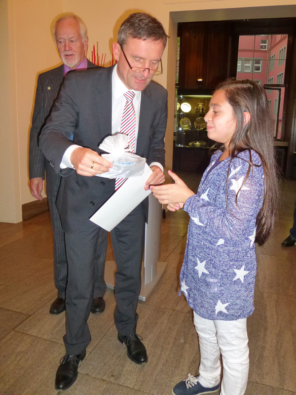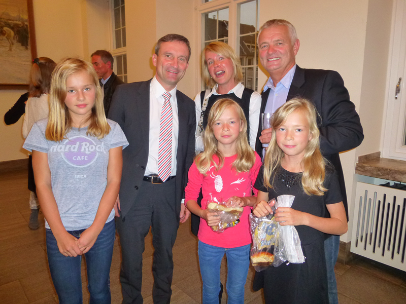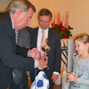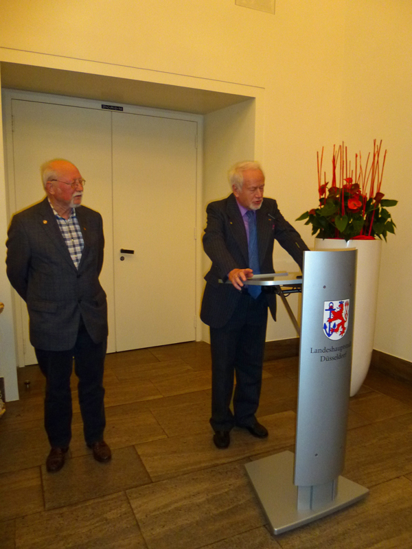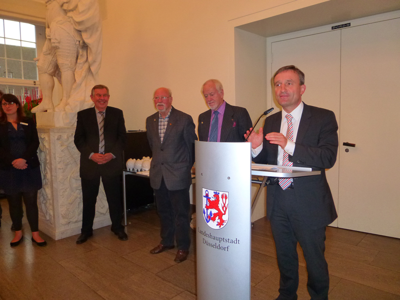 Zu Anfang erklärte unser Oberbürgermeister den Kindern, wie die Tradition des Radschlagens nach der Schlacht von Worringen entstanden sein könnte. Seine eigenen Kinder hatten zuletzt beim großen jährlichen Radschlägerturnier der Alde Düsseldorfer am Rheinufer teilgenommen. Er würdigte in seiner Rede das große Engagement der Bürgerhilfe und das Straßenfest im September, was er mit seiner Familie kurz nach Amtseinführung miterlebte. Hans Küster, der erste Vorsitzende der Bürgerhilfe, bedankte sich dafür, dass sich unser Oberbürgermeister für die Radschlägerehrung Zeit nahm, zumal dieser am nächsten Tag seine erste große Auslandsreise nach China schon früh antritt. Jedes anwesende Kind bekam ein Präsent des Oberbürgermeisters.