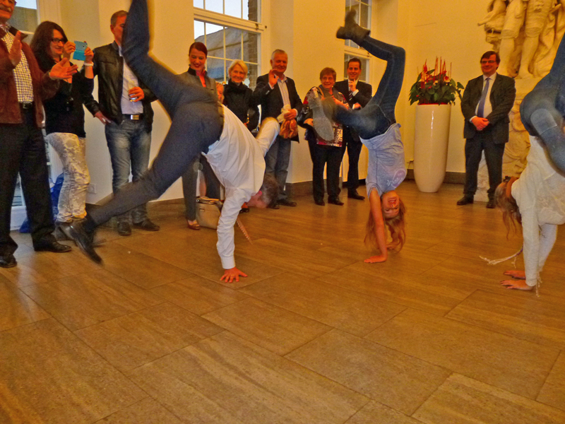 Es war schon ein Ereignis der besonderen Art, als Oberbürgermeister Thomas Geisel im Jan-Wellem-Saal des Düsseldorfer Rathauses mit den siegreichen Kindern des Straßenfestes der Bürgerhilfe Gerresheim am Ende der Radschlägerehrung tolle Räder schlug. Für alle Anwesenden, darunter auch Karsten Kunert, der neue Bezirksbürgermeister des Stadtbezirkes 7, und Marcel Brünnen, Leiter des Marktgebietes Düsseldorf City-Nord der Deutschen Bank, Eltern, Pädagogen, viele Mitglieder der Bürgerhilfe Gerresheim und natürlich die Kinder wurde diese Veranstaltung zu einem unvergesslichen Erlebnis.