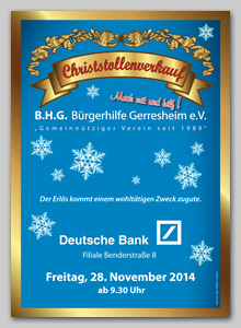 Schon zum zehnten Mal verkaufte die Bürgerhilfe Gerresheim in der Filiale Benderstraße der Deutschen Bank Christstollen, um mit dem Erlös ihre sozialen Projekte zu unterstützen. Schon mittags waren 15 Stollen verkauft und nachmittags ging es zügig weiter. Neben den fleißigen Helfern der Bürgerhilfe waren Prominente wie Chefarzt Prof. Dr. Christoph Andree vom Sana-Klinikum Gerresheim, Ratsherr Rolf Buschhausen, Bernd ten Eicken, Leiter vom Düsseldorfer Rheinboten, Ratsfrau Angelika Penack-Bielor und Anisur Rahman, Vorsitzender der Ursula-Rahman-Stiftung tatkräftig dabei. Heinz Lückerath, Filialdirektor der Deutschen Bank Benderstraße und Hans Küster, 1. Vorsitzender der Bürgerhilfe Gerresheim konnten mit dem Verkauf mehr als zufrieden sein. Anwesende Kunden hatten während dieser Aktion die Gelegenheit, mit den prominenten Helfern ein Schwätzchen zu halten.