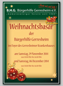 Der liebevolle kleine Basar der Bürgerhilfe Gerresheim im Sana-Klinikum an zwei Samstagen, 29.11.2014 und 6.12.2014, hat schon eine lange Tradition. Selbst gemachte Marmelade wie von Muttern, Plätzchen, Strick- und Häkelsachen, Gebasteltes von Vereinsmitgliedern, Spielzeuge und andere Dinge werden von fleißigen Helfern und Mitgliedern angeboten.