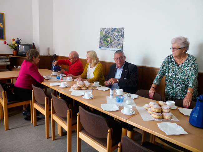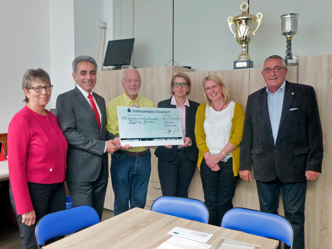 Hans Küster, der 1. Vorsitzende, und Georg Kesting, der 1. Schatzmeister der Bürgerhilfe Gerresheim, strahlten, als ihnen Lütfü Sine, Filialdirektor der Stadtsparkasse Düsseldorf im Stadtbezirk 7, und Melanie Günther, Geschäftsstellenleiterin der Filiale an der Benderstraße, einen Scheck über 2500 Euro aus einem besonderen Topf für die Büroausstattung der Geschäftsstelle der Bürgerhilfe in den Räumen an der Märkischen Straße 25 überreichten. Filialdirektor Sine würdigte in seiner Rede das Engagement der Bürgerhilfe Gerresheim und gemeinsame Aktivitäten wie bei der Kindereinkleidungsaktion und den letzt jährigen Chrisstollenverkauf der Bürgerhilfe in den Räumen der Filiale der Stadtsparkasse Düsseldorf auf der Benderstraße, dessen Erlös damals für die Kindereinkleidungsaktion bestimmt war. Bei der Übergabe gab es hohen Besuch. Denn die Düsseldorfer Ratsfrauen Helga Leibauer und Angelika Penack- Bielor, Ratsherr Rolf Buschhausen, der ehemalige Bezirksvorsteher Hanno Bremer und Sönke Willms-Heyng von der Bezirksvertretung 7 waren extra zur Übergabe der Spende gekommen und würdigten das Engagement der Stadtsparkasse. Sie waren von der neuen Mobiliarausstattung des Büros, das im neuen Glanz erschien, begeistert. Die Mobiliarerneuerung war dringend notwendig, weil auch viele Akten nicht mehr untergebracht werden konnten. Hans Küster gibt eher Geld für soziale Notwendigkeiten als für das Büro aus, das aus allen Nähten platzte. Praktisch 100 Prozent der Einnahmen wie zum Beispiel der Erlös des gerade stattgefundenen Straßenfestes sind für die sozialen Projekte der Bürgerhilfe Gerresheim bestimmt. Dank an die Stadtsparkasse Düsseldorf, stellvertretend an Filialdirektor Sine und an Melanie Günther, der Geschäftsstellenleiterin an der Benderstraße und weiterhin gute Zusammenarbeit.