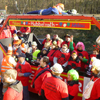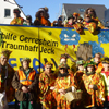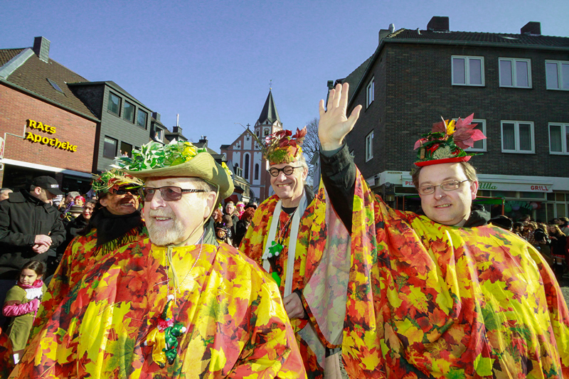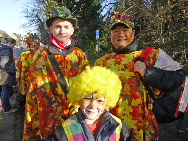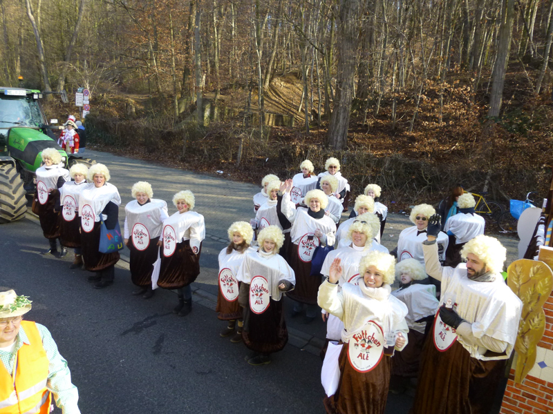 Dank der Saubande, die den Gerresheimer Veedelszoch vorbildlich organisiert hatte! Die Mitglieder der närrischen oder jecken Bürgerhilfe machten in ihren einheitlichen Kostümen auf die Sturm bedingten Baumschäden aufmerksam. Pünktlich um 11.11 Uhr schien die Sonne und der Zoch begann in umgekehrter Reihenfolge, so dass die Teilnehmer alle 40 Wagen und Gruppen beim Jubiläum der Saubande sehen konnten. Dadurch konnte man bei der Aufstellung auf der Quadenhofstraße alle Wagen und Gruppen im Gegenlicht zur Sonne bestaunen, wenn man mit seinem Wagen vorbeizog. Über Morper Straße, Heyestraße ging es Richtung Gerresheimer Rathaus. Im Bereich Alter Markt bis hin zur Benderstraße waren dabei riesige Menschentrauben zu sehen. Die Begeisterung der Menschen war riesig. Man schunkelte, einige standen um ein Bierfass herum am Kölner Tor und es wurde viel Helau gerufen. Auch auf der Von-Gahlen-Straße und "Unter den Eichen" sammelten die Kinder fleißig Wurfmaterial. Über die Schönaustraße ging es schließlich nochmals bis zum Alter Markt. Es schien ganz Gerresheim auf den Beinen.