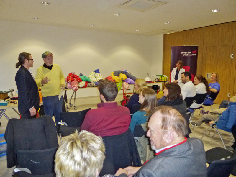 Die C-Jugend von TUS Gerresheim bekam 22 Trainingsanzüge in ihren Vereinsfarben. Die katholische Grundschule "Unter den Eichen" erhielt einen Zuschuss zu ihrem Zirkus-Projekt, das stolz auf einer CD festgehalten wurde. Die Jugendabteilung des DSC 99 konnte mit Hilfe der Bürgerhilfe Gerresheim Hallenbälle, Masken und andere Utensilien im 4-stelligen Bereich anschaffen. Caritas und Diakonie wurden finanziell bei den Sprechstunden unterstützt. Oberarzt Markos Botsaris von der Säuglings-Station des Gerresheimer Krankenhauses war hoch erfreut über die neuen Kirschkern-Kissen. Sie sind auf der Station sehr effektiv, weil die Säuglinge viel Wärme brauchen. Dazu gab es noch abwaschbare Lagerungskissen für die Frauenstation. Der neue Tanzclub Düsseldorf-Gerresheim erhielt für die Kinder- und Jugendabteilung 2 Meter hohe Spiegel, um die Trainingsarbeit zu optimieren. Bei der Lebenshilfe auf der Gudastraße bekamen einige Heimbewohner einen finanziellen Zuschuss für eine Urlaubsfahrt. Die D-Jugend des TV Grafenberg erhielt einen Trikotsatz. Der JVA wurde bei ihren erzieherischen Projekten finanziell unter die Arme gegriffen. Auch die Jugendclubs Heyebad und Gräulinger Straße erhielten je einen finanziellen Zuschuss für eine Sommerferienfahrt 2015, weil einige Kinder sonst in den großen Ferien nicht verreisen können, ebenso die Sportfreunde Gerresheim für eine Ferienfahrt im kommenden Sommer an die Sieg, nach Deitenbach, von der Herr Löppenberg schilderte. Die beiden Kinder des katholischen Kindergartens "Maria vom Frieden", am Lohbachweg, nahmen die beiden Doppelkindertaxis, eine Art Dreirad, sofort in Beschlag. Die Pädagoginnen der heilpädagogischen Kita "Alexandra" am Lohbachweg waren glücklich über die elektronischen Sprachausgabegeräte, Sprachanreger, Talker und Medien zur Kommunikationsförderung und strahlten bei deren Demonstration. Der Kindergarten "Am Türmchen" erhielt einen Zuschuss für den Turmraum. Auch noch einige andere Schulen und Kindergärten konnten sich über Sachspenden erfreuen. Auch die Behindertenabteilung des Tischtennisvereins PSV Borussia Düsseldorf, vertreten durch Herrn Schilling, der auch Pate beim Blinden-Tischtennis ist, erhielt einen Zuschuss. Insgesamt wurden beeindruckende 32000 Euro für diese Aktionen von der Bürgerhilfe Gerresheim ausgeschüttet. Die Veranstaltung machte die Bandbreite des sozialen Engagements deutlich. Zum Schluss wurden die zahlreich erschienenen Vertreter der Gruppen vom Krankenhaus noch zu Kaffee und Kuchen eingeladen. Dank gilt an dieser Stelle den Förderern der Bürgerhilfe, den vielen großen und kleinen Spendern. Schwerpunkt der Bürgerhilfe Gerresheim jedoch bleiben die Kindereinkleidungsaktionen im Stadtbezirk.