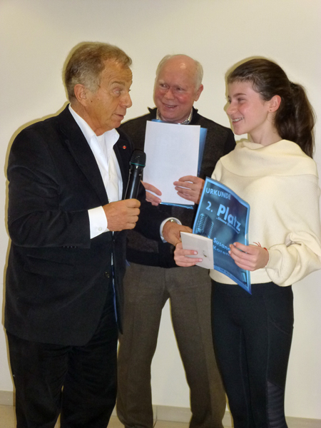 Im Rahmen dieser Veranstaltung wurden auch die Preise der drei Erstplatzierten des Wettbewerbs "Stimme Gerresheim" des diesjährigen Straßenfestes überreicht. Der 1. Preis für Miriam Grimm, von Bernd ten Eicken überreicht, beinhaltete eine Studioaufnahme bei Mike Morrigan. Der 2. Preis, Einladung zu einem Essen zu Zweit im Ristorante Saltimbocca, wurde Susanne Korenblum von Enrico de Angelis, mehrfacher Sieger der Tour de Menü, persönlich überreicht. Der 3. Platz, Cosini Cinaluca, wurde von der Filiale der Deutschen Bank auf der Benderstraße, vertreten durch Carsten Krämer, gestiftet. Anschließend wurden bei einem Buffet noch viele angeregte Gespräche geführt.