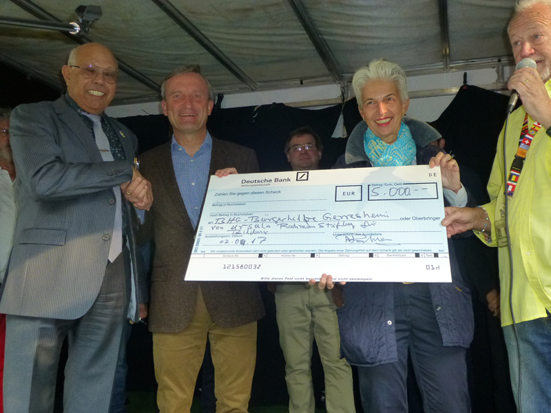 Besonders hervorzuheben war wieder eine großzügige Spende von Herrn Anisur Rahman von der Ursula-Rahman-Stiftung über 5000 Euro mit dem Schwerpunkt für Bildung. Anschließend machte Oberbürgermeister Geisel einen Rundgang über den gut besuchten Trödelmarkt, wobei so manches Foto gemacht wurde. Mit Ute Schulz, der Schirmherrin der Bürgerhilfe Gerresheim, war extra ein Kind aus dem Sauerland angereist, um an dem Radschlägerturnier teilzunehmen. Unter den Anwesenden waren Dr. Jens Petersen, der 2. Vorsitzende und Ratsfrau Angelika Penak-Bielor und Ratsherr Rolf Buschhausen, die kräftig Lose mitverkauften verkauften.