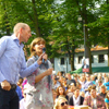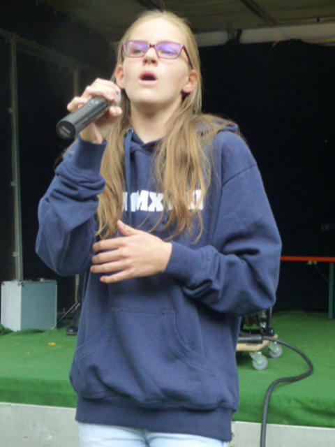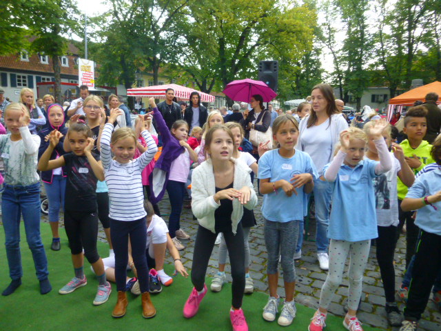 Nach der ersten Runde begeisterten die Kinder der Aktion "Singpause", die ihre Lieder in verschiedenen Sprachen sangen. Marika Mitten und die Kids ließen sich bei ihrer gesanglichen Reise um die Welt nicht durch einen kurzen Regenschauer abschrecken. Viele der anwesenden Kinder wurden aktiv und machten spontan mit.