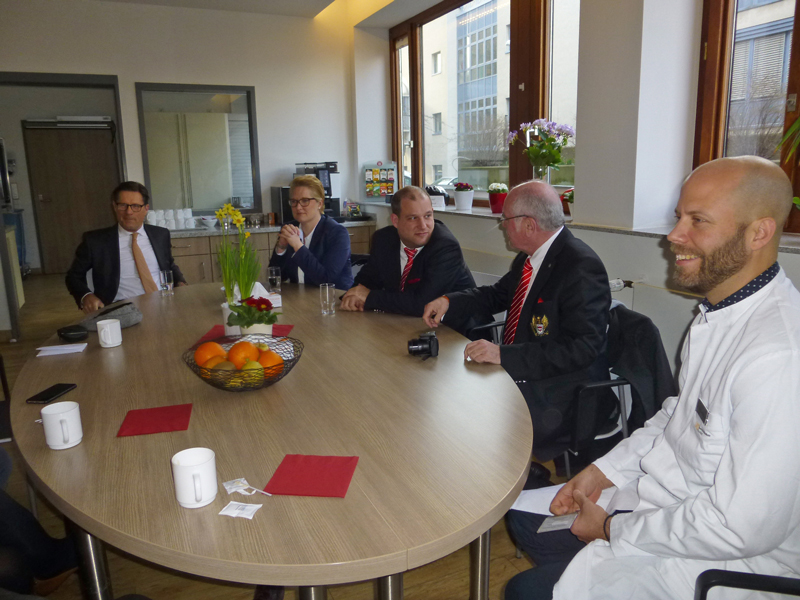 Hans Küster, erster Vorsitzender der Bürgerhilfe Gerresheim, und Dr. Martin Neukirchen von der Palliativstation der Düsseldorfer Universitätsklinik waren völlig überrascht und sprachlos, als Ihnen das Grafenpaar Quad, Rolf I. und Gräfin Eva, im bürgerlichen Leben Rolf Müller und Eva Hlouschek, am Montag, dem 26. Februar 2018 in der Uniklinik einen nie erwarteten hohen vierstelligen Scheck auf der Krankenstation symbolisch kurz nach der Karnevalssession überreichte, der zu gleichen Teilen an Bürgerhilfe Gerresheim und Palliativstation geht. Gräfin Eva machte es sehr spannend und geheimnisvoll, damit alle die verdutzten Gesichter der Beschenkten sehen konnten. Unter Anwesenheit von Alexander Gerritzen und Wolfgang Seifert von der Gerresheimer Bürgerwehr sowie Annika Butzen und Dr. Joachim Mohme vom Pharmakonzern Roeser wurde der Scheck überreicht. Auch die kurz hinzugekommene Christa Stillger, Chefin der Pflege auf der Palliativstation, kam aus dem Strahlen nicht mehr heraus, als sie die vierstellige Karnevalszahl mit den gleichen Ziffern hinter dem Komma sah, wie die Bilder vermitteln.