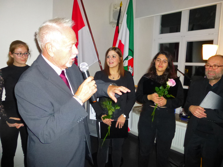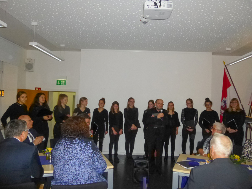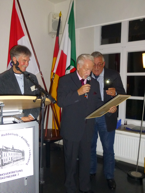 Die Bezirksvertretung 7, Ratsfrauen und Ratsherren und viele Vereinsvorsitzende und Prominenz waren an diesem Abend im Gerresheimer Rathaus ebenso vertreten wie Familienangehörige, der Vorstand der Bürgerhilfe Gerresheim und eine Reihe seiner Mitglieder. Vor der Medaillenverleihung wurden 8 Mitglieder der Bürgerhilfe für mehr als 25jährige Mitgliedschaft geehrt. Kleinere Reden und Begrüßungen wurden auch von Hans Küster, dem 1. Vorsitzenden der Bürgerhilfe, und dem Schirmherrn Anisur Rahman gehalten. Hans Küster hatte bis zur Laudatio von Klaus Schröder die diesjährige Preisträgerin geheim gehalten. Bezirksbürgermeister Karsten Kunert, der auch die Grußworte des verhinderten Bundestagsabgeordneten Thomas Jarzombek vorlas, hatte sich für diesen Abend einiges einfallen lassen. Denn für das Rahmenprogramm konnte er als ein Highlight unter Leitung von Klaus Wallrath den Jugendkammerchor von St. Margareta gewinnen, der praktisch a cappella sang, und die Anwesenden begeisterte. Der Abend endete mit einem Büffet der Superlative, das Bezirksbürgermeister Karsten Kunert komplett alleine zubereitet hatte, anscheinend sein Hobby, so gab es zum Beispiel neben Quiche auch seine berühmt Bürgermeisterrolle. Es war ein gelungener Abend, an dem viele konstruktive Gespräche geführt wurden. Nochmals herzlichen Glückwunsch an Claudia von Rappard, die sich immer wieder für die Belange der Bürger im Stadtbezirk 7 einsetzt.