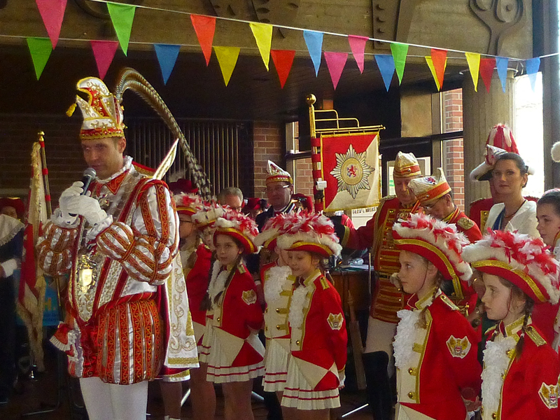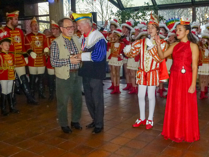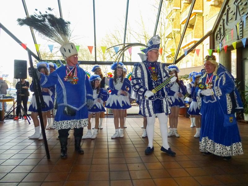 Mit imposanten Aufmarsch begann der karnevalistische Nachmittag der Bürgerhilfe Gerresheim am Samstag, dem 16.2.2019 bei Kaffee mit Berliner im gefüllten DRK-Seniorenzentrum, als die Gerresheimer Bürgerwehr mit dem Düsseldorfer Prinzenpaar, Martin I. und Venetia, und deren Adjutanten in Rot und Weiß auftrat. Es war ein prachtvolles Bild, wobei das Prinzenpaar im Wettstreit mit Stephan Friedel, dem Präsidenten der Gerresheimer Bürgerwehr, scherzte und die Herzen der Senioren sofort gewann. Toll war auch der Auftritt des Solotanzmariechens, der Kinder- und Jugendtanzgarde der Gerresheimer Bürgerwehr, die mit ihren einstudierten Tänzen, besonders ihres Showtanzes mit bunten Reifen, für ein Highlight sorgten, während die Garde zwischendurch den Saal mit ihren stimmungsvollen Liedern einheizte, wobei Präsident Stephan Friedel so mancher flotte Spruch spontan über die Lippen kam. Hans Küster, der erste Vorsitzende der Bürgerhilfe , und sein Sohn Michael, der den Nachmittag souverän moderierte, waren ebenso begeistert wie Anisur Rahman, Schirmherr der Bürgerhilfe, der an dieser Stelle auf die Rock-Charity am 30. März im Stahlwerk zu Gunsten der Bürgerhilfe aufmerksam machte, dafür warb und sich spontan bei der Gerresheimer Bürgerwehr für die tolle Darbietung mit einer Reihe von Freikarten für das Rockkonzert bedankte.