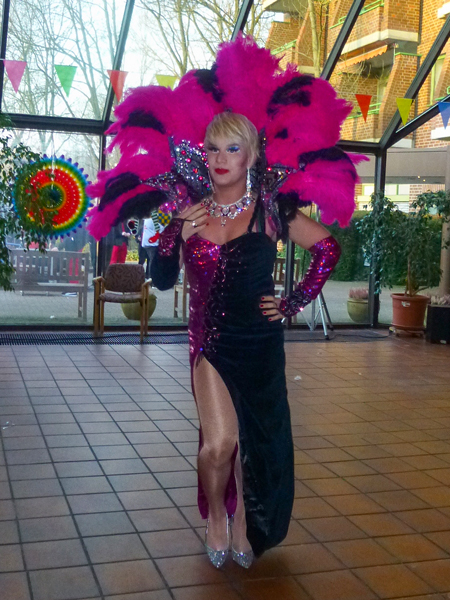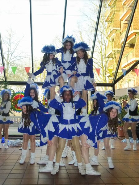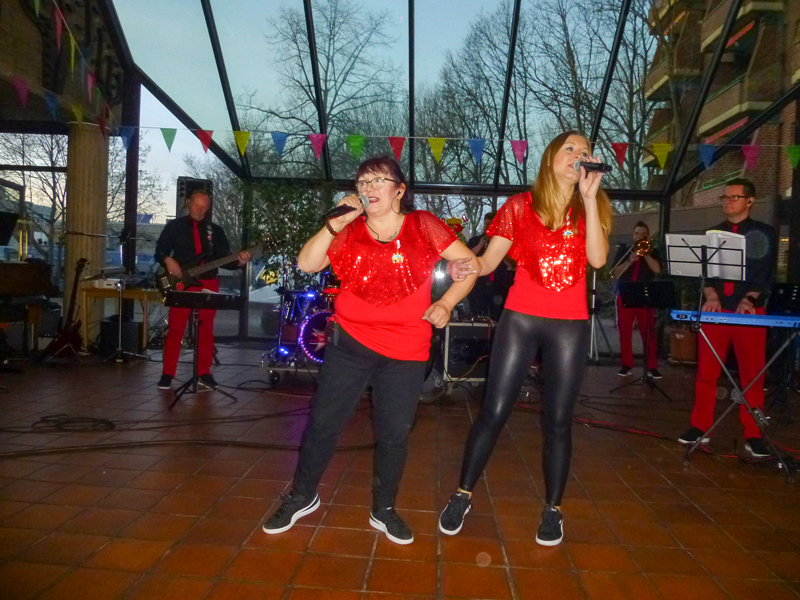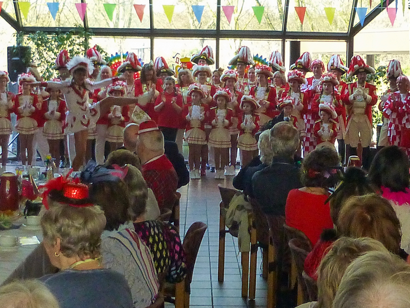 Die Sängerin Danielle Juli sorgte mit ihrer tollen Stimme für den nächsten Glanzpunkt der Veranstaltung. Farbenreich ging es zu, als Travestiekünstler Dyana Dyamond, mit seinem prachtvollen Kostüm, und seinen Liedern alle Anwesenden hellauf begeisterte. Anschließend trat die Kindertanzgarde der Prinzengarde Rot-Weiß mit deren Kommandanten und dem Kinderprinzenpaar auf, wobei der Prinz als ehemaliger Kinderbüttenredner bekannt wurde und sie durch ihre Gesangsstimme beeindruckte. Die Garde selbst brachte die Anwesenden mit ihrer beeindruckenden Tanzdarbietung ins Schwärmen und Staunen. Krönender Abschluss der Veranstaltung war der Auftritt der Rheinfanfaren Düsseldorf, die im Sommer- wie im Winterbrauchtum die Bürgerhilfe mit ihrem beeindruckendem Instrumentenklangkörper unterstützen und deren beide überragenden Sängerinnen die Senioren zum Mitsingen animierten und vor Begeisterung Zugaben geben mussten.