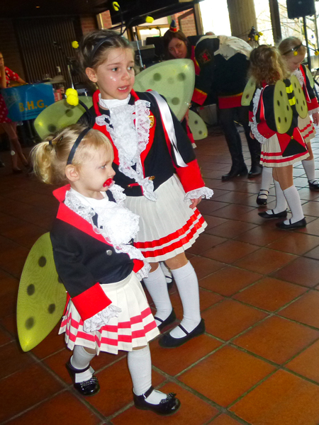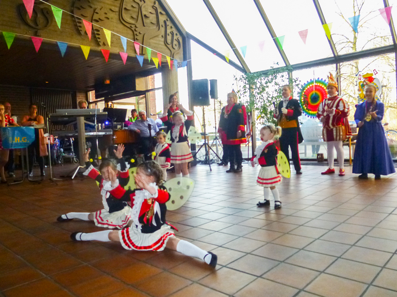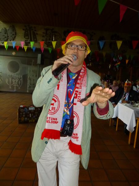 Sänger Thomas Mühlenbein brachte anschließend den Saal mit altbekannten Düsseldorfer Liedern, aber auch seinen eigenen zum Kochen. Danach hörten die Senioren dem Puma, alias Dirk Westmeier, gespannt zu, und waren von seinen Witzen ebenso begeistert wie Ratsherr Rolf Buschhausen, Bezirksbürgermeister Karsten Kunert, Hanno Bremer, sein Stellvertreter, Günter Hering von TUS Gerresheim, oder Heinz Lückerath, um nur einige von vielen anwesenden Persönlichkeiten zu nennen. Als schließlich die Kindergarde der Düsseldorfer Bürgerwehr mit Kommandant und deren Kinderprinzenpaar einzog, waren alle Anwesenden begeistert, und besonders hingerissen von deren Tänzen, besonders des Showtanzes der Kleinsten der Kleinen mit Art Biene Maja-Flügeln, aber auch der Garde in Pippi Langstrumpf Kostümen. Doch auch die Tanzgarde der KG Närrischen Schmetterlinge war ein sensationelles Highlight, ebenso deren Dreigestirn, das zur Hochform auflief, und in diesem Jahr bei der Kindereinkleidung die Herzen der Kinder sofort gewann.