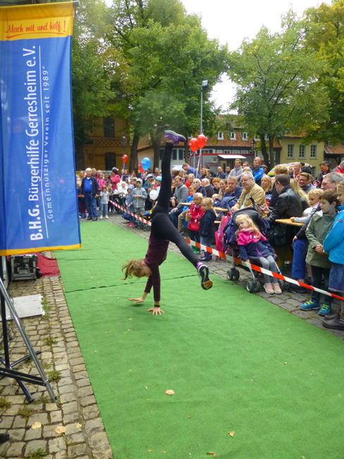 Im vierten Jahr feierte die Bürgerhilfe Gerresheim zusammen mit der Benderstraße unter dem Motto "Ganz Gerresheim feiert". Die Geschäftsleute der Benderstraße hatten für die Besucher viele Überraschungen und Attraktionen vorbereitet, wie ich bei einer Stippvisite feststellen konnte, so zum Beispiel Seifenblasen und Schminken für Kinder. Durch den Regenguss verschob sich das Bühnenprogramm am Apostelplatz, wo Annemarie Exner von der TanzZeit gegen 14.30 Uhr zunächst Kinder zum Tanzen animierte. Kulinarisches wurde dort auch auf dem Platz geboten. Später begeisterten unter anderem noch die Swinging Funfares, die Band The Popgold und am Abend die Bang Bang Dixie bis etwa 21 Uhr. Tagsüber fuhr dazu eine alte Straßenbahn aus den Nachkriegsjahren mit Schaffner über die Benderstraße, die zwischen Metro und der Schleife auf der Heyestraße kostenfrei pendelte, als weiteres Highlight genoss ich selbst eine Rikscha, die zwischen Benderstraße und Gerricusplatz verkehrte. Als tagsüber die Sonne herauskam, schien zwischenzeitlich ganz Gerresheim auf den Beinen.