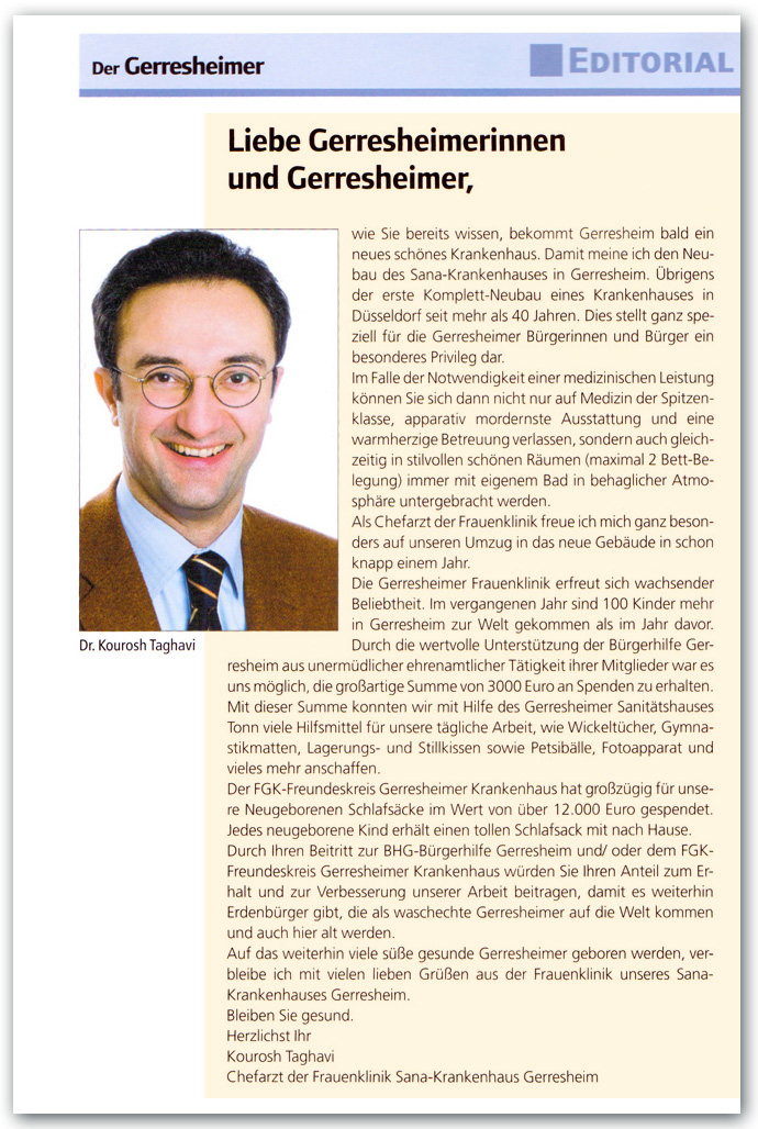 Editorial von Dr. Kourosh Taghavi im Magazin "Der Gerresheimer" Ausgabe 09/2011